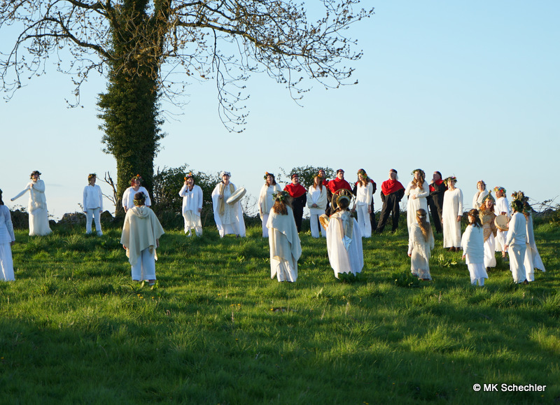 Wenn man die irische Insel auf der Karte ansieht, kann man mit etwas Fantasie die Umrisse als sitzenden, nach links blickenden Teddybären erkennen. In der Mitte, irgendwo dort wo man den Bauchnabel verorten würde, liegt der “Hill of Uisneach”, der heilige Berg der Kelten. Hier wird das “Bealtine Fire Festival” zelebriert, das seinen Ursprung weit in der Vergangenheit hat.
