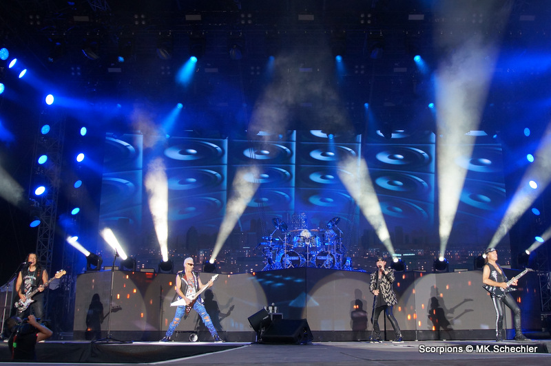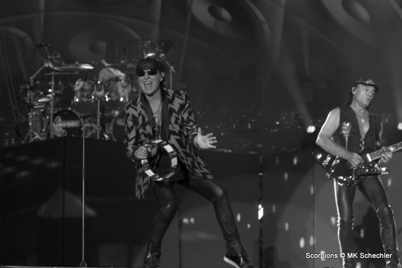 Natürlich sind “Send Me an Angel” und “Wind of Change” dabei, aber auch “Tease Me Please Me”, “Blackout” und “Big City Nights”, denn hitmäßig kann die Band in ihrem fünfzigjährigen Bestehen aus dem Vollen schöpfen. So sind aus allen Schaffensdekaden Songs auf der für Scorpions ungewöhnlichen Setlist, angefangen beim 70er-Jahre Medley bis zu einem Motörhead-Cover “Overkill”. Die Band gedenkt hierbei einen alten Freund, dem 2015 verstorbenen Lemmy Kilmister, mit dem sie oft auf der Bühne standen. Drummer Mikkey Dee, der 2016 den vorherigen Drummer James Kottak nach zwanzig Jahren bei den Scorpions ablöste, war davor selbst bei Motörhead Bandmitglied. Dem Coversong folgte dann auch passend sein Drum Solo.