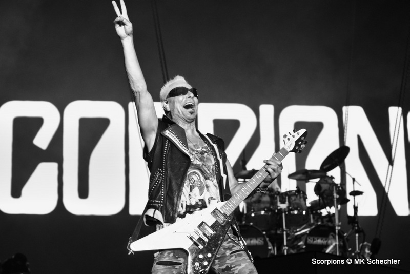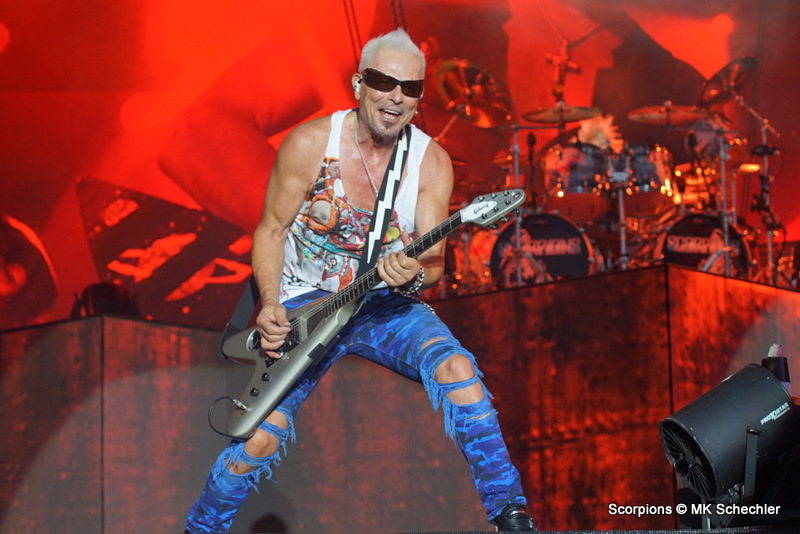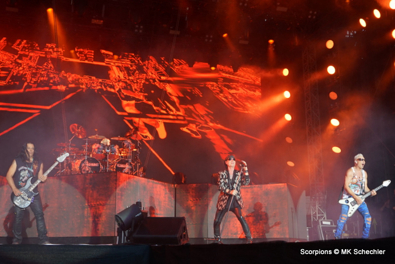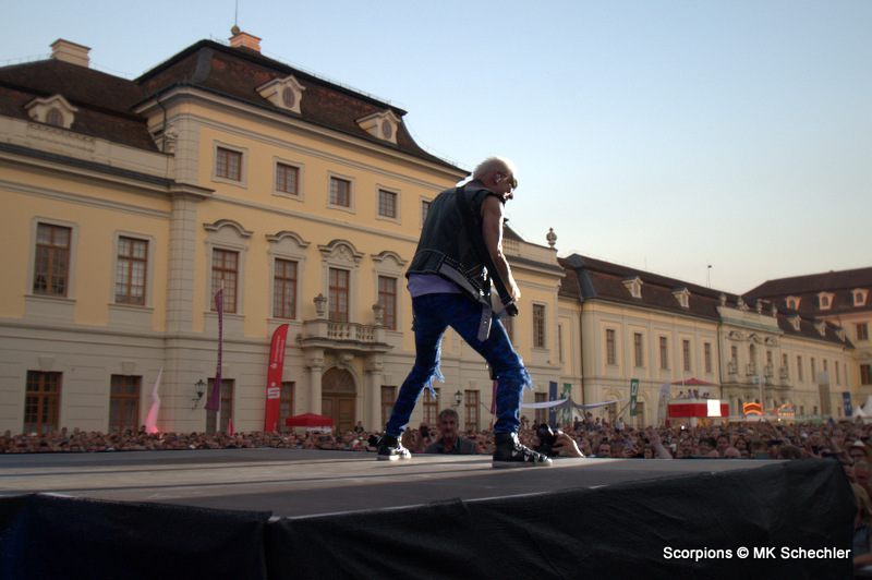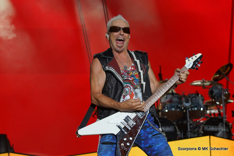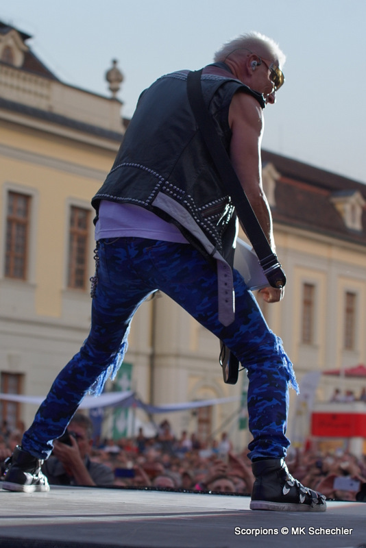 Erster Tag der KSK musicopen 2018 in Ludwigsburg: Vor fast ausverkauftem Haus rocken die Scorpions den Schlosshof des Residenzschlosses Ludwigsburg. Eine ungewöhnliche Setlist inklusive 70er Medley und “Overkill” Motörhead Cover runden den Abend ab. Davor ganz starke Kadavar aus Berlin.Die achte Auflage der KSK musicopen im Residenzschloss Ludwigsburg startet mit einem Paukenschlag: Die Scorpions rocken den Schlosshof. Klaus Meine mit gewohnt durchdringender Stimme hat die Menge sofort im Griff, agiert anfangs jedoch etwas zurückhaltend. Nicht so Rudolf Schenker, der gleich zu Beginn wie ein Duracell-Hase über die Bühne fegt und sich auch mit seinem farbigen Outfit von den anderen Bandmitgliedern abhebt.