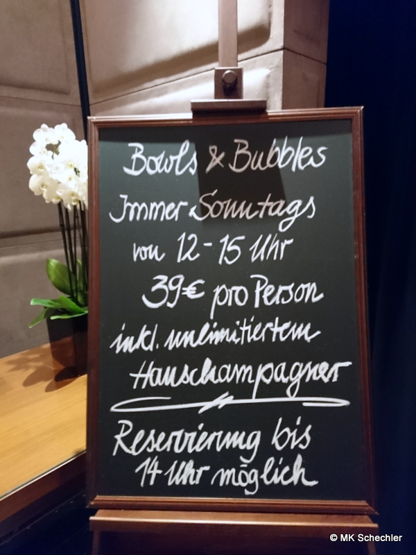 Mit prickelndem Champagner und leckeren Bowls können Sie das Wochenende entspannt ausklingen lassen. Das Team serviert Ihnen als „flying“ Buffet kleine Bowls gefüllt mit allerhand kulinarischen Leckereien – der Schwabe würde Schüsselchen dazu sagen.