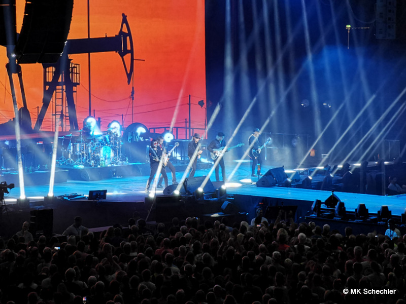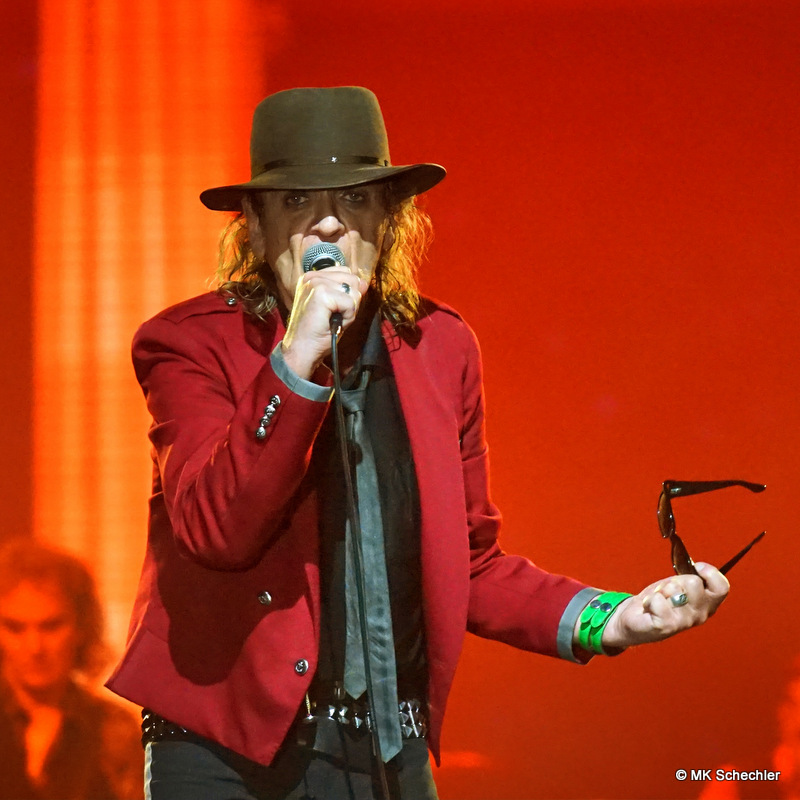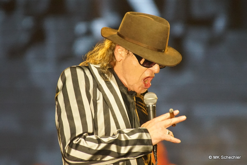 Gleich vorweg – bei Udo ist es wie bei gutem Wein: Je älter, je besser! Was dieser Mann in seiner etwa dreistündigen Show hier in der Stuttgarter Schleyerhalle alles auf die Beine stellt ist großartig, bombastisch. Der inzwischen Dreiundsiebzigjährige bewegt sich behände zwischen Band, Background-Sängern oder tanzenden Frauen-Formationen, die mal futuristisch, mal als Nonnen mit anschließendem Aha-Effekt auftauchen. Immer schwingt eine Botschaft zu aktuellen Themen mit, anstatt Kriege sollten die Mächtigen die Kämpfe persönlich im Boxring austragen – prompt stehen Trump und Putin mit übergroßen Köpfen auf der Bühne. Menschlichkeit, Natur sind weitere angesprochene Themen.Nach “Woody Wodka” zu Beginn folgen “Honky Tonky Show”, “Mein Ding” gleich Titel, die die Fans von Anfang bis Ende mitsingen – und das ist erst der Anfang. Nach zwanzig Titeln kommt der erste Zugabenblock, es wird nicht der einzige bleiben. Auf insgesamt zweiunddreißig Titeln kommen wir am Schluss. Klasse auch der Auftritt des langjährigen Weggefährten und WG-Mitbewohner OTTO, zusammen intonieren sie nicht nur “Friesenjung”, sondern auch den eingedeutschten AC/DC Titel “Heimweg wird’s Hell” – klasse. Da wo Udo Lindenberg draufsteht ist auch Udo Lindenberg drin und das hundertprozentig!