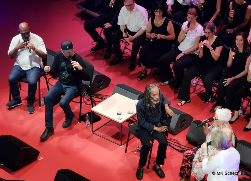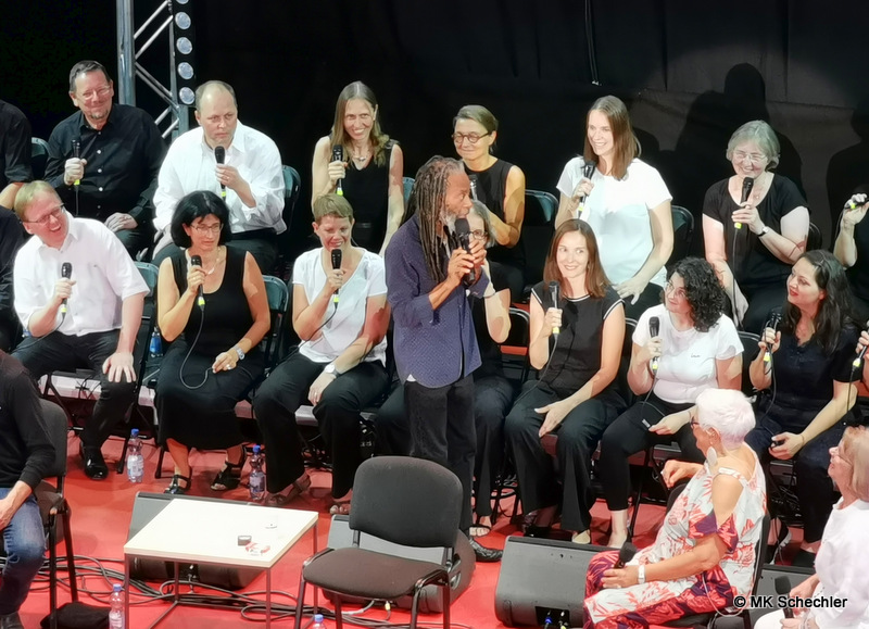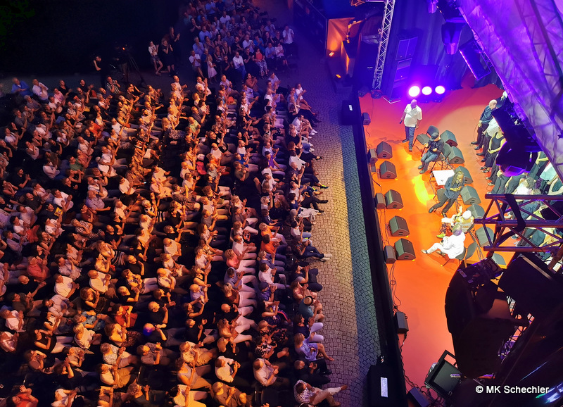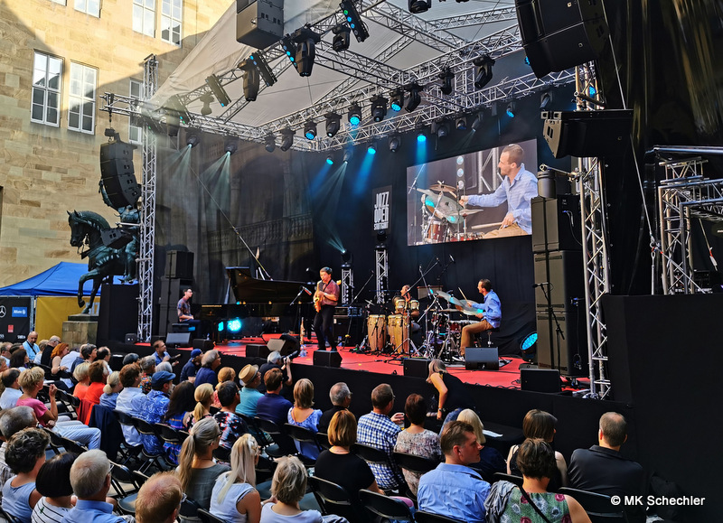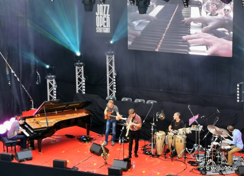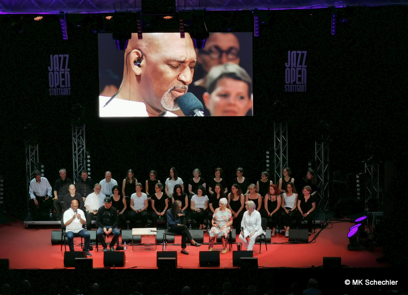 Der zehnfache Grammy-Gewinner Bobby McFerrin war gestern Abend mit „Gimme 5“ bei den jazzopen im Alten Schloss zu Gast und präsentierte eine a-cappella-Show mit vier weiteren Musikern. Begeistert nahmen die Fans im ausverkauften Hof des Alten Schlosses auch das Zusammenspiel mit dem Chor der Kantorei Stuttgart auf, die wie Bobby McFerrin sagte, “…von der anderen Straßenseite kommen”. Davor begeisterte Adrien Brandeis mit seinen Begleitern die Anwesenden.