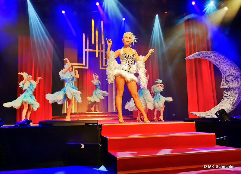 Für die Winterproduktion dürfen wir talentierte Artisten und Künstler aus der ganzen Welt auf der Bühne bestaunen. Ein Revue Ballett aus Großbritannien, eine Sängerin aus Russland, ein Jongleur aus Argentinien, Künstler aus Italien, Russland und der Ukraine sowie Deutschland bilden das 14-köpfige Ensemble der „1925 – Die 20er Jahre Revue“.