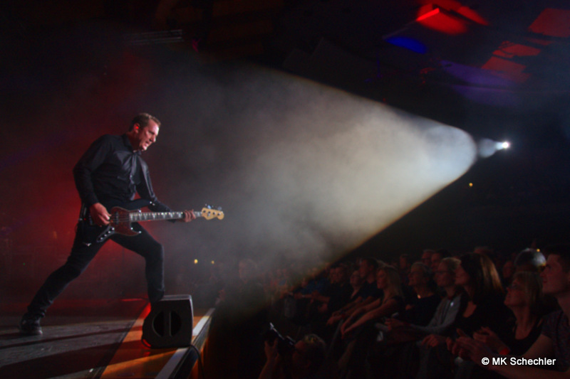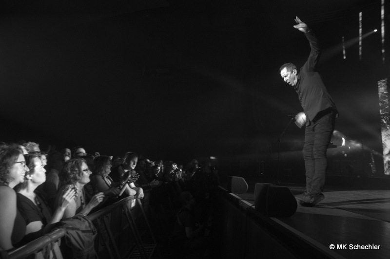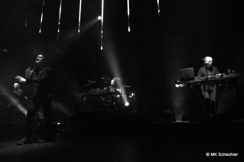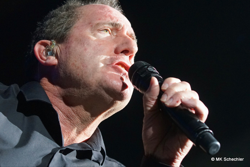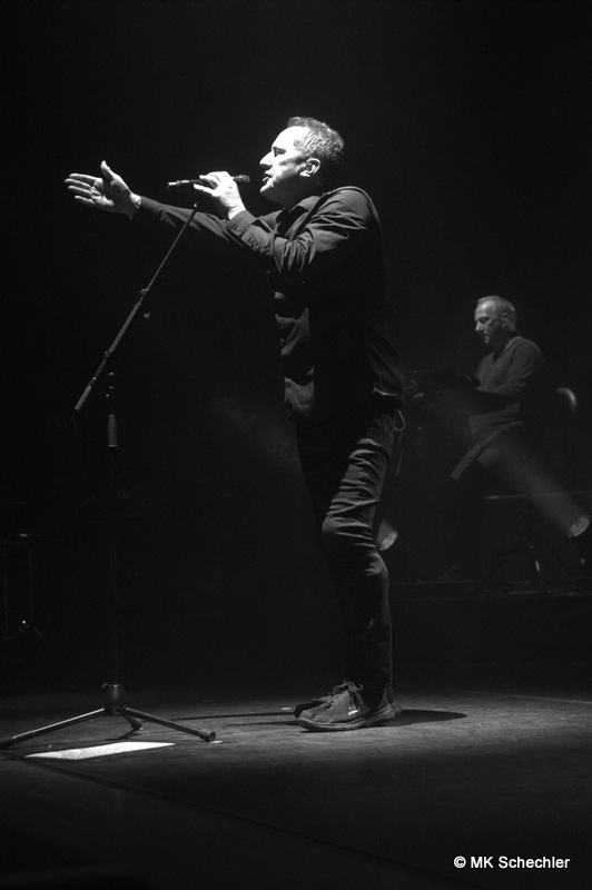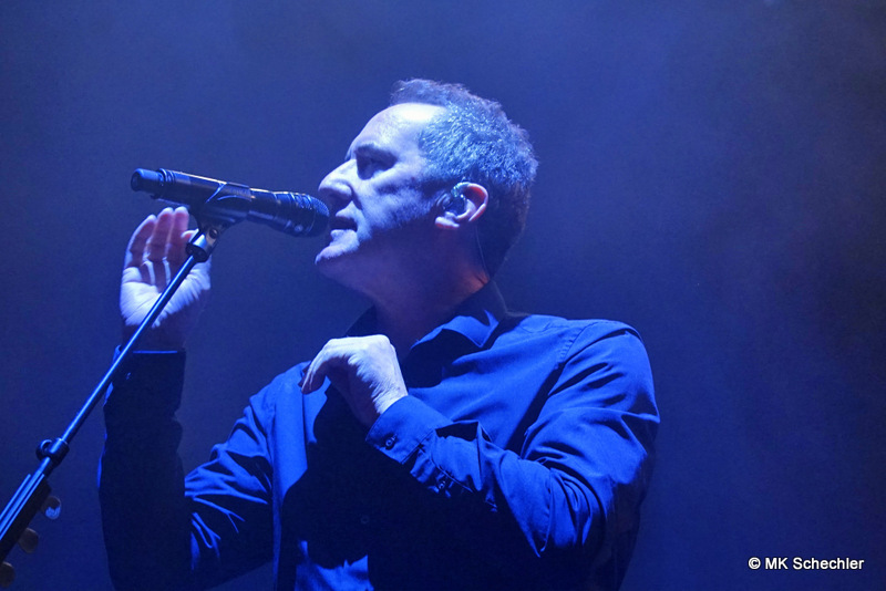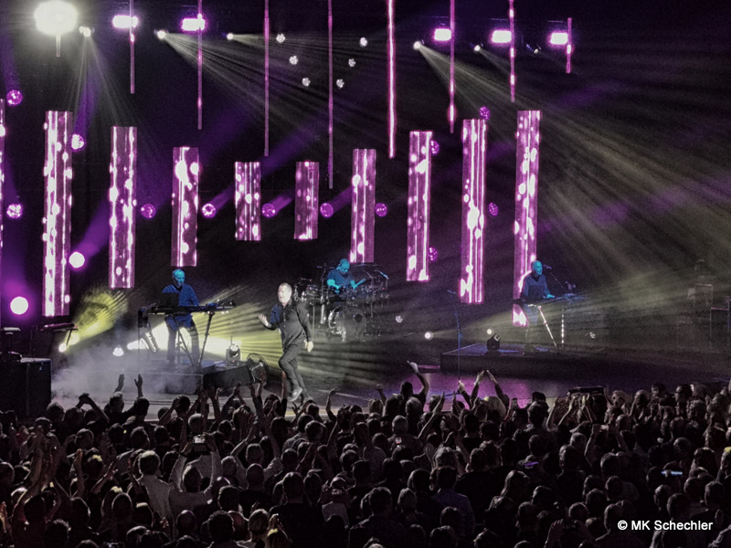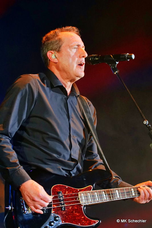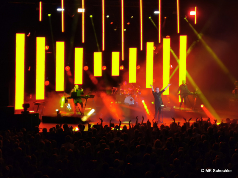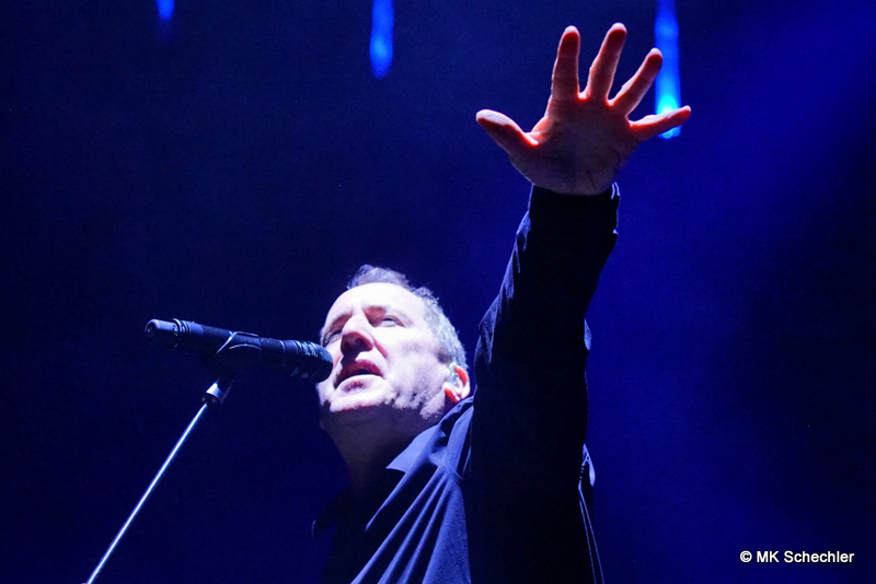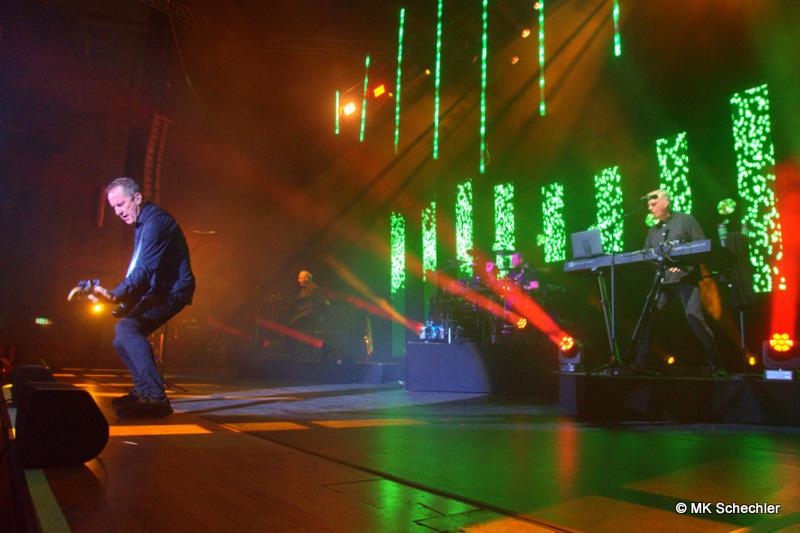 Auch nach 40 Jahren OMD wird es Andy McCluskey nicht langweilig. Wie ein Derwisch fegt er über die Bühne, tanzend, extatische Bewegungen unterstreichen seinen Gesang, wenn er nicht die E-Gitarre zur Hand nimmt. Die Sechzig Lenze sieht man seiner Performance nicht an.