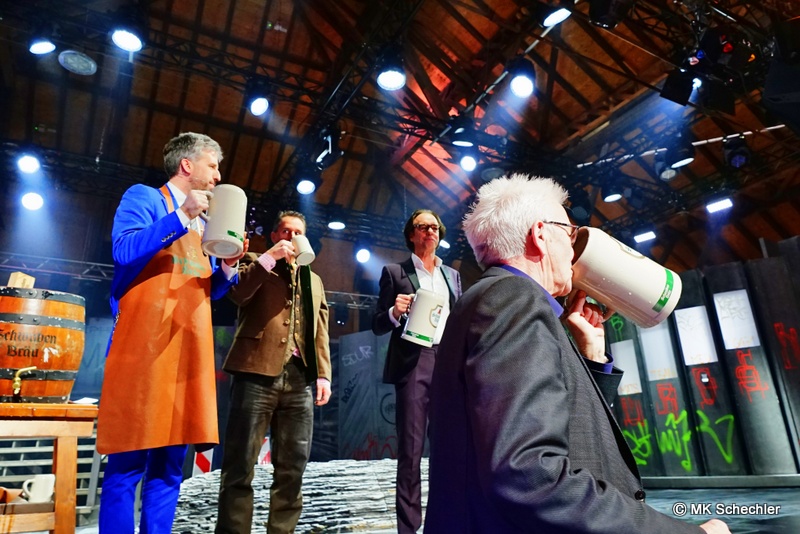 Dieses Mal taucht der Geistliche direkt neben der großen Baugrube vor dem Ministerium für Umwelt, Klima und Energiewirtschaft auf, wo sich seit erst kurzer Zeit geheime Akten der Landesregierung befinden… unter Hochdruck wird im Ministerium geforscht und nach der„Formel aller Formeln“ gesucht… ob es wohl die für veganen Rostbraten ist? Oder eine noch viel Gefährlichere..? Ja, Maultaschen-Diesel!