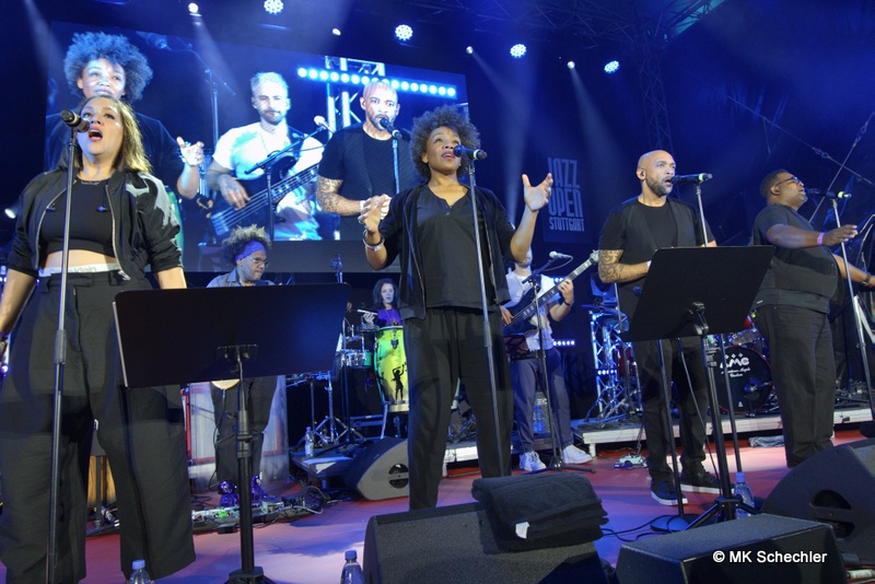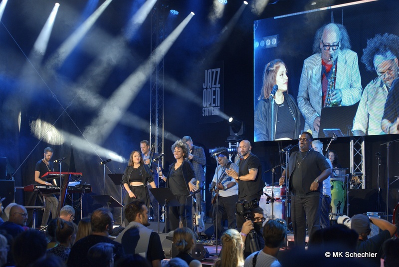 Unter dem Motto “We love Soul Music!” hat Bandleader Obi Jenne die Stuttgarter All Star Band in XXL Besetzung aufgestellt. Zur Eröffnung der diesjährigen jazzopen stuttgart vor der atemberaubenden Kulisse des Alten Schlosses stehen 14 Künstler auf der Bühne.Neben der Band sorgen das Vocals-Quartett Eva Leticia Padilla, Fola Dada, Charles Simmons und Derrick Alexander für gehörig Dampf im Stuttgarter Kessel. Ergänzt wird das explosive Gemisch durch Rapper Soul Elements und Special Guest Ola Onabulé mit einem beeindruckenden Auftritt.