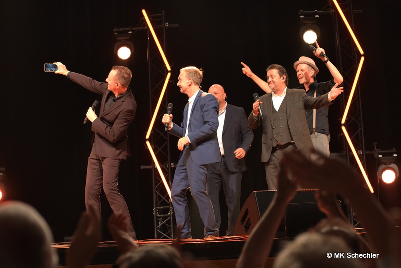 Ihr Siegertreppchen ist die Tonleiter, ihr Schicksal ist Maulheldentum. FÜENF – einfach unverwüstlich! Die Füenf treffen zwei Ex-Füenfer und geniessen die illustren Gäste: die spontane KATIE FREUDENSCHUSS, den tanzwütigen BERND KOHLHEPP und die überraschenden EURE MÜTTER. Und die FÜENF verwöhnen mit Filetstücken und Klassikern eines Vierteljahrhunderts.