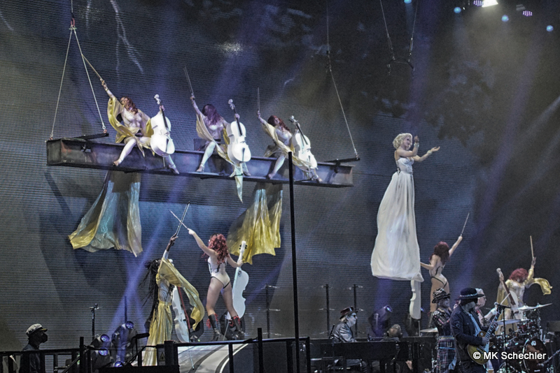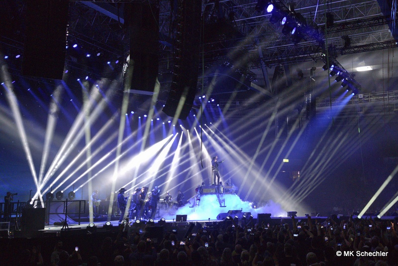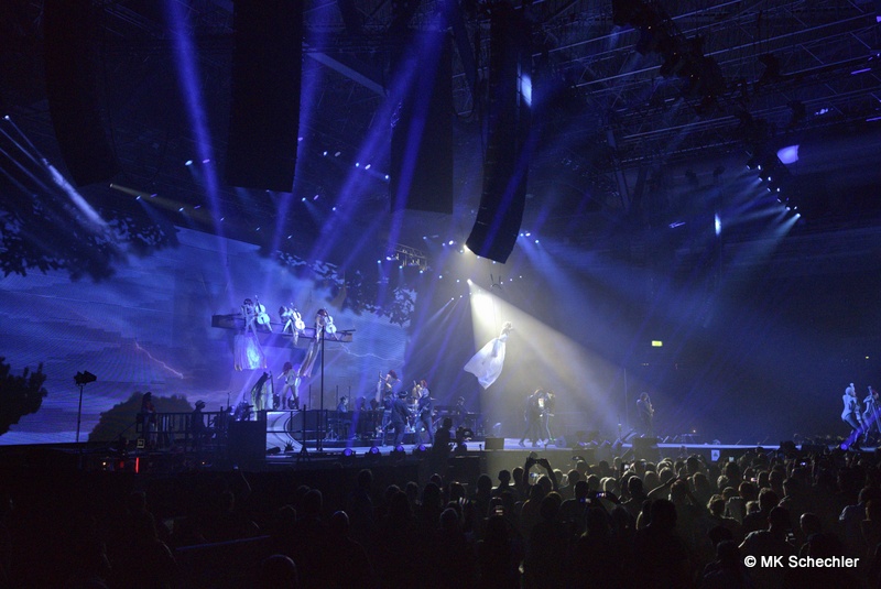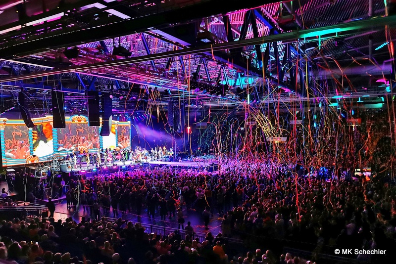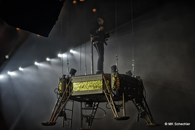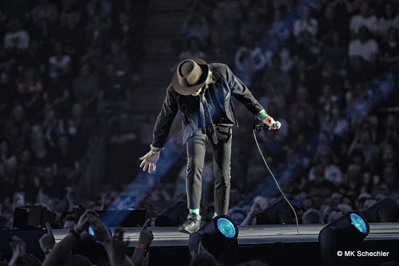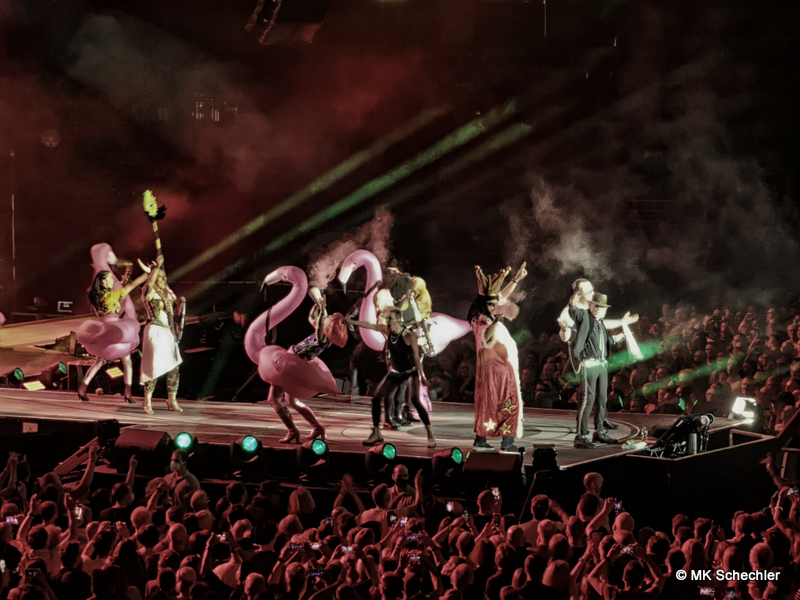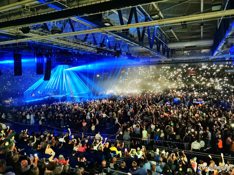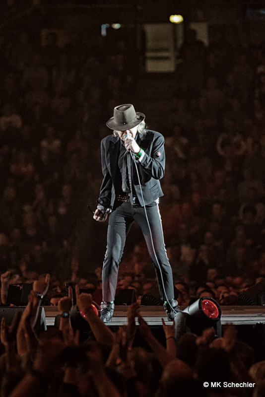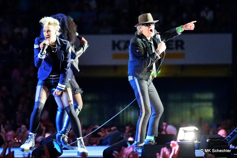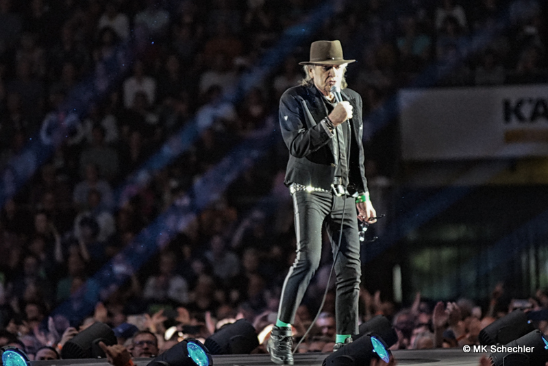 Fast drei Jahre haben die Fans vom ursprünglich geplanten Konzert im Juli 2019 in Stuttgart auf den Panikrocker warten müssen. Jetzt, kurz nach seinem 76. Geburtstag war es soweit – Udo Lindenberg steigt in der Schleyerhalle vom Himmel herab und bringt eine spektakuläre Show mit. Zwei Tage Udopium mit ausverkauftem Haus am ursprünglich geplanten Samstag-Termin, beim später auf den 27.Mai gelegten Zusatztermin waren noch wenige Karten zu haben. Die insgesamt 22.000 Fans erfreuen sich über bekannte Songs, einem Duett mit Clueso zu “Cello” und drei neuen Titeln aus seinem neuen, tourneenamengebenden Album UDOPIUM, “Kompass”, “Wieder genauso” und “Wir ziehen in den Frieden”.Udo hält mit seiner Meinung nicht hinterm Berg, da werden gleichgeschlechtliche Liebe, Krieg, Toleranz und Umweltverschmutzung thematisiert. Bei seinem neuen Titel “Wieder genauso” macht er sich noch Gedanken über den Tod. Trotz dieser schwierigen Themen gelingt es ihm gut, diese Themen in die Shows so einzuflechten, das die Stimmung nicht kippt sondern diese weiterträgt. Bei “Honky Tonky Show” sind gleich mehr als 10 Udos auf der Bühne, die “Bunte Republik Deutschland” ist wirklich bunt auf der Bühne. Zahlreiche Tänzer und Tänzerinnen, Sänger und Sängerinnen, Akrobatinnen sowie das altbekannte Panikorchester begleiten ihn auf dem zweistündigen Ritt.