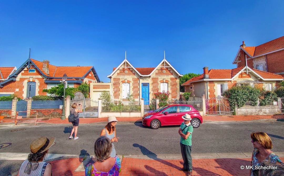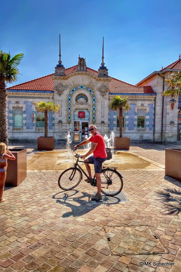 Wir starten wieder vom Bahnhof St.Jean in Bordeaux mit einem Regionalzug nach Soulac-sur-Mer, einem pittoresken Badeort an der Atlantikküste. Für das Mittagessen haben wir uns vor der Fahrt mit einem Lunchpaket eingedeckt, die Fahrt dauert etwas über eine Stunde. Hier geht es mit geliehenen Fahrrädern weiter, was aufgrund des flachen Geländes und der wundervollen Landschaft die einfachste Option ist. Wissenswertes über die Basilika Notre-Dame-de-la-Fin-des-Terres die zum UNESCO Weltkulturerbe gehört, den historischen Villen, den Leuchtturm von Cordouan vor dem Ort im Meer erfahren wir bei einer kleinen Stadtführung und kaufen anschließend in der Markthalle regionale Delikatessen direkt vom Erzeuger für zu Hause ein…