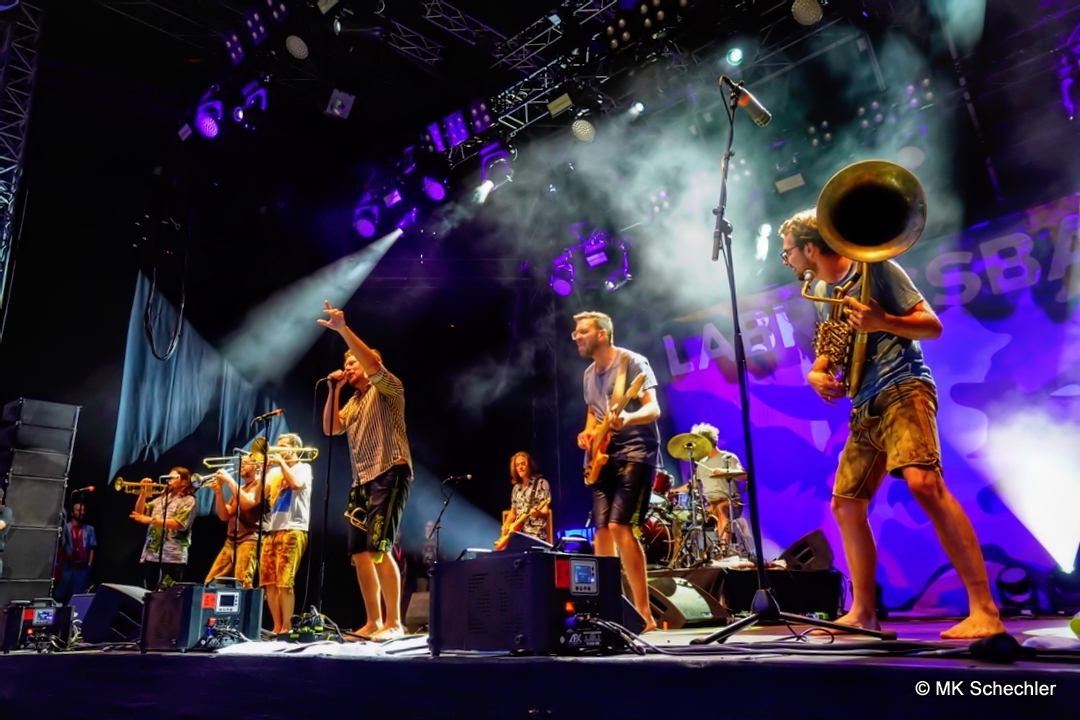 Das Brasstival öffnet am Nachmittag mit den regionalen Formationen Musikverein Ossweil und Spicy Root aus Schwieberdingen. Mit Druckluft und Folkshilfe erhöht sich die Frequenz und gipfelt am späten Abend mit dem Auftritt von La Brass Banda. Der neue Hype um Blasmusik zeigt sich deutlich an den Reaktionen der etwa 3.500 Zuschauer. Keine Musik mehr für die Älteren, die Faszination der neuen Bands greift auf jugendliches Publikum über. Pop- und Rocksongs aus allen Dekaden werden zudem neu interpretiert. Klasse!