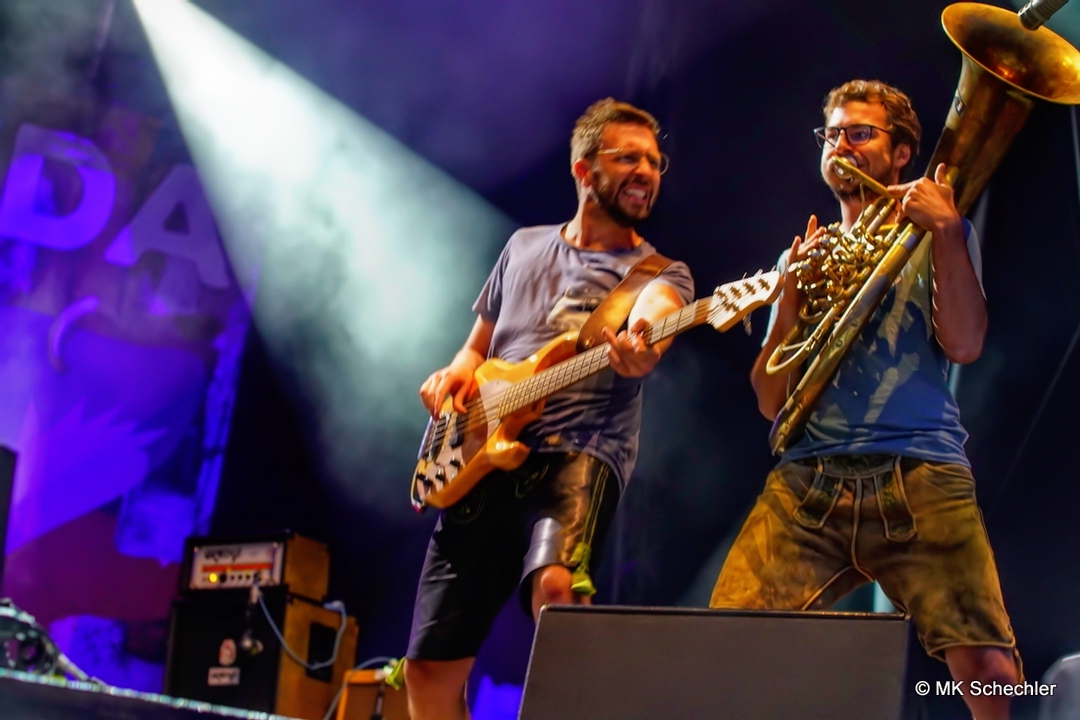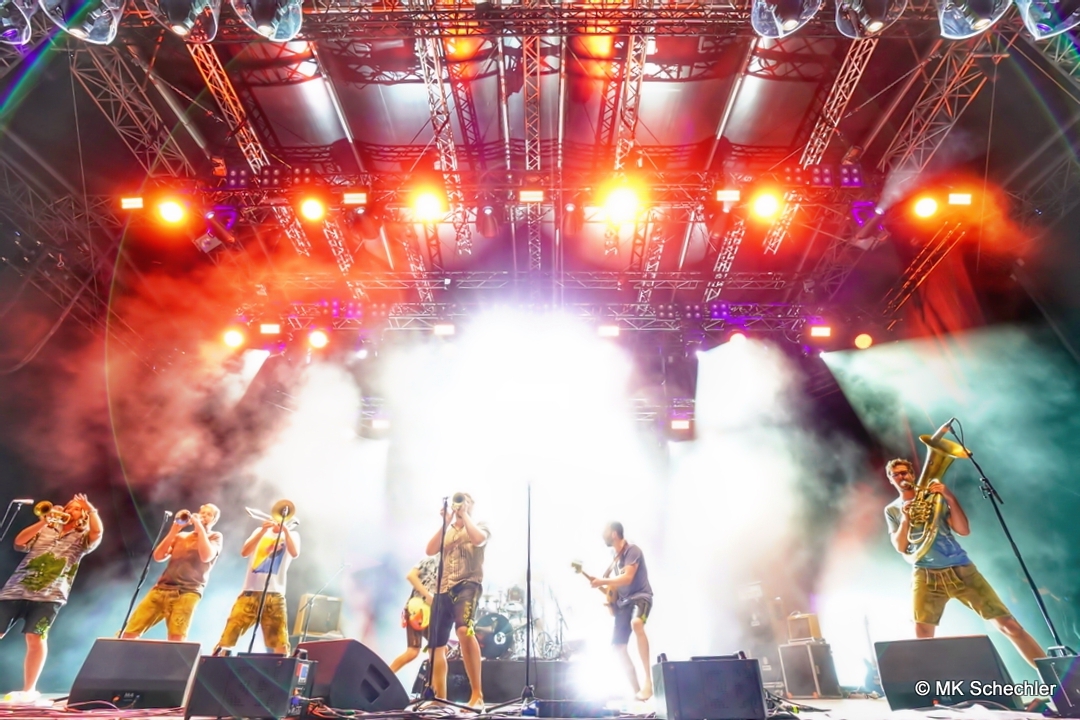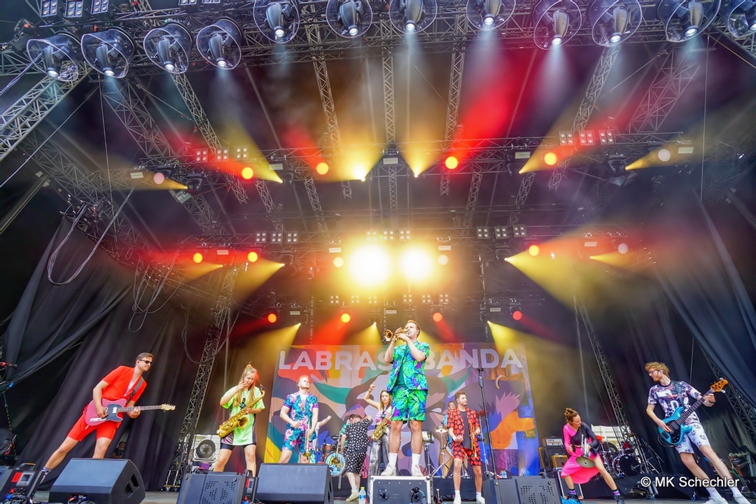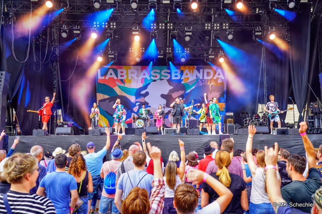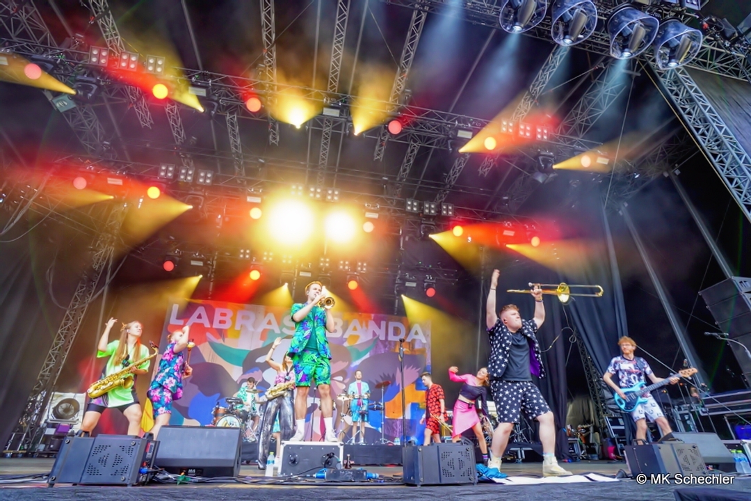Live immer noch einen draufzusetzen, ist für LaBrassBanda noch nie ein Problem gewesen. In den letzten Jahren haben sie unzählige Clubs, Hallen, Bierzelte und Festivals schwindelig gespielt, sodass sie dafür längst ein bisschen weltberühmt sind. Kaum eine lebende Liveband hat einen dermaßen kurzen Draht zu ihrem Publikum – wo bei anderen Bands der gern zitierte „Funke überspringt“, findet zwischen LaBrassBanda und ihren Fans ein ungedimmter Energiefluss statt; quasi Standleitung. Nun ist es allerdings Zeit mit ein paar Klischees aufzuräumen. Ja, LaBrassBanda kommen aus Bayern. Ja, sie tragen gerne Lederhosen. Ja, Sie spielen Blasmusik. Die notorisch vollgasfreudigen Blasmusik-Tanzpop- Wahnsinnsknaben aus dem Chiemgau scheren sich um keine Grenzen, denn für sie gibt es keine Grenzen. Keine Ländergrenzen, keine stilistischen Grenzen und auch keine Grenzen im Kopf. Wer Lust hat, die Stimmungsgaranten live zu sehen, darf das Konzert in Ludwigsburg nicht verpassen.