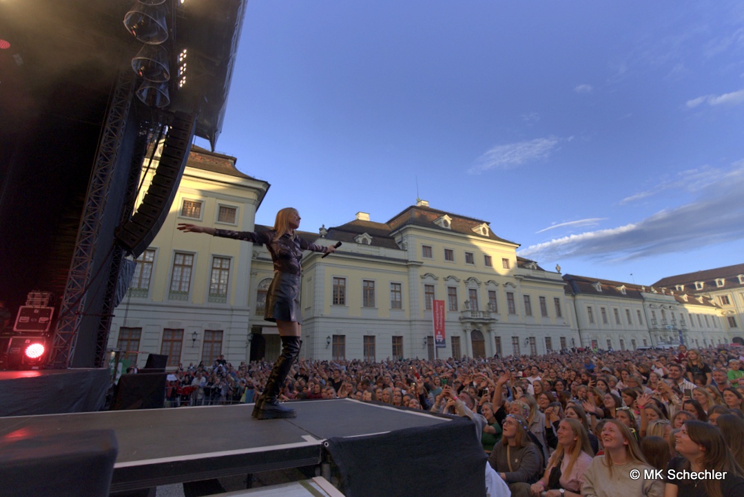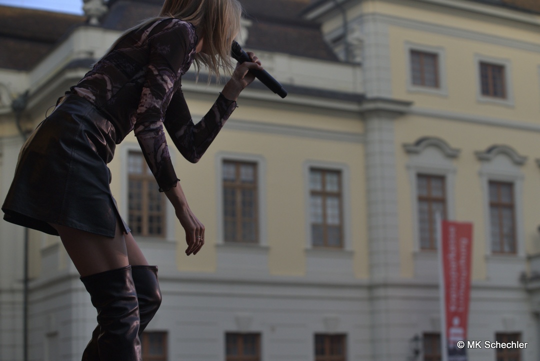 LEA tanzt nicht im Treppenhaus, sondern auf der Bühne der 11. KSK MusicOpen im Innenhof des Residenzschlosses Ludwigsburg. Als Support und harmonischer Neopop Duettpartner TUFFI.