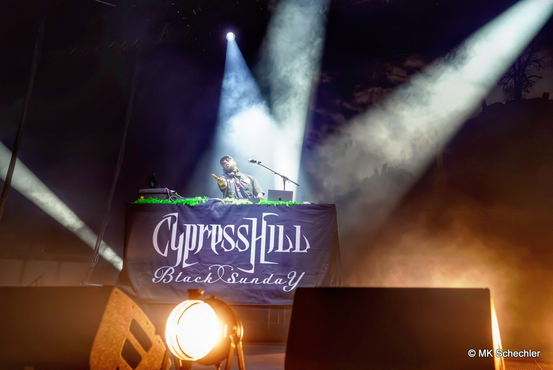Am 15. August verwandelte sich die Porsche Arena Stuttgart in einen wahren Hip-Hop Hexenkessel, als die legendäre Formation Cypress Hill dort ihr dreißigjähriges Jubiläum des bahnbrechenden Albums “Black Sunday” feierte. Die Fans strömten in Scharen herbei, um die kalifornischen Hip-Hop-Ikonen live auf der Bühne zu erleben und ihre Hits aus den vergangenen Jahrzehnten zu feiern. Das Konzert begann mit einer atmosphärischen Einstimmung durch DJ Lord (vgl. Text mit Fotos bei uns), bei der sich die Spannung langsam aufbaute und das Publikum in die Welt von Cypress Hill eintauchte. Als die Mitglieder der Gruppe schließlich die Bühne betraten, brach die Halle in Jubel aus. B-Real, Sen Dog und DJ Muggs wurden mit lautstarken Applaus begrüßt, und die Energie im Raum war förmlich spürbar.Die Gruppe zelebrierte das Jubiläum von “Black Sunday” auf eindrucksvolle Weise, indem sie das gesamte Album von Anfang bis Ende aufführten. Jeder Song löste Begeisterung und Nostalgie bei den Fans aus, die enthusiastisch mitsangen und tanzten. Klassiker wie “Insane in the Brain”, “I Ain’t Goin’ Out Like That” und “Hits from the Bong” wurden von der Menge mit ekstatischem Jubel aufgenommen. Doch das Konzert bot noch viel mehr als nur die Hits von “Black Sunday”. Cypress Hill verwöhnte ihre Fans mit einer mitreißenden Auswahl an weiteren Hits aus ihrer langen Karriere. Tracks wie “How I Could Just Kill a Man”, “Hand on the Pump” und “Tequila Sunrise” brachten die Menge zum Toben. Die Gruppe bewies ihre Bühnenpräsenz und das Talent, das sie über die Jahre hinweg kultiviert hat.