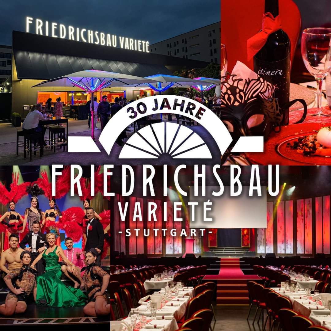 “30 Jahre Friedrichsbau Varieté! 🎉🎂 Seit dem glanzvollen Eröffnungstag am 24. Februar 1994 fanden 360 Shows bei uns statt. Davon 118 Eigenproduktionen. 🎭🌟 Über 2,4 Millionen Gäste haben bereits die Magie des Friedrichsbau Varietés erlebt, und über 2.400 talentierte Künstlerinnen und Künstler aus 36 Ländern haben unsere Bühne mit Leben gefüllt. 🌍💫 Heute lassen wir die Korken knallen und feiern diese unglaubliche Reise der letzten 30 Jahre gemeinsam mit euch! 🥂🎉 Danke für eure Treue. Ihr seid die Besten!!! 🥂🎉”