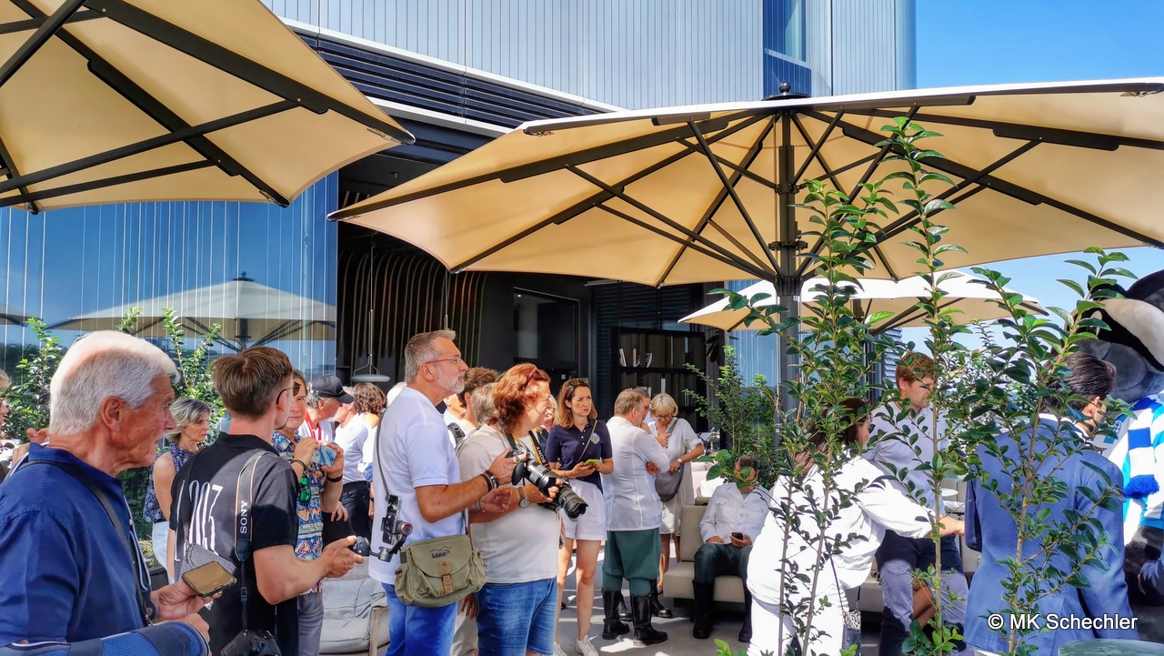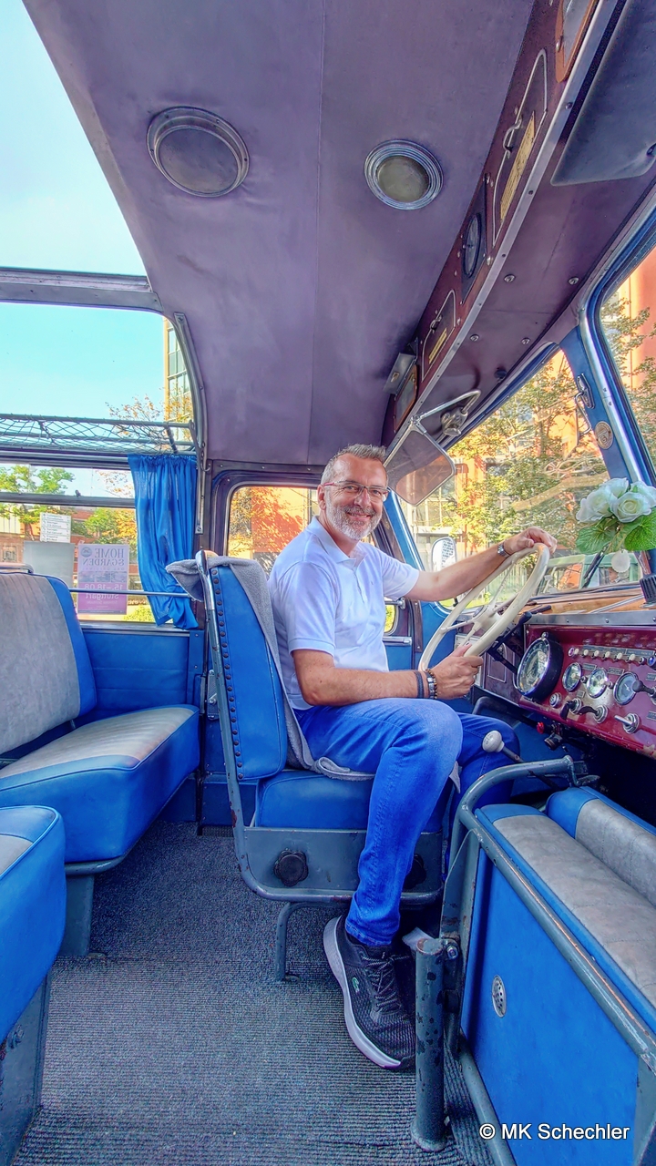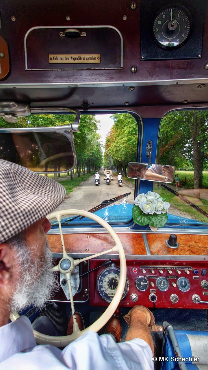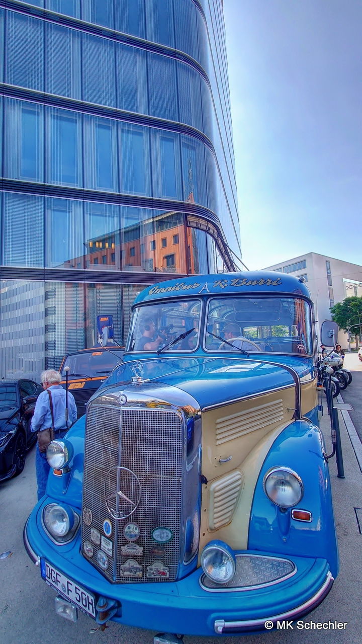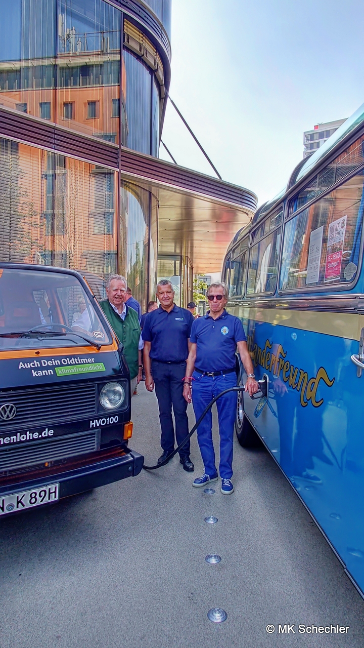 Freitag Vormittag: Da trifft man Seine Königliche Hoheit Leopold Prinz von Bayern (Poldi) der den Weltmeisterbus von 1954 der Firma Auwärter mit seinem favorisierten E-Fuel tankt um im Konvoi begleitet von einigen “Rotnasen”, wie die Porsche-Diesel Traktoren im Volksmund liebevoll genannt werden und drei Rauhreitern auf zeitlich passenden Motorrädern aus dem Stuttgarter Polizeimuseum gen Schloss Solitude zu fahren. Dort findet aktuell die Garten-Ambiente-Ausstellung Home&Garden statt. Kurz vor Abfahrt gab es am Startpunkt Radisson Blu Stuttgart Hotel am Pragsattel noch ein Willkommenstrunk auf der Rooftop Bar und eine kurze Hotelführung.