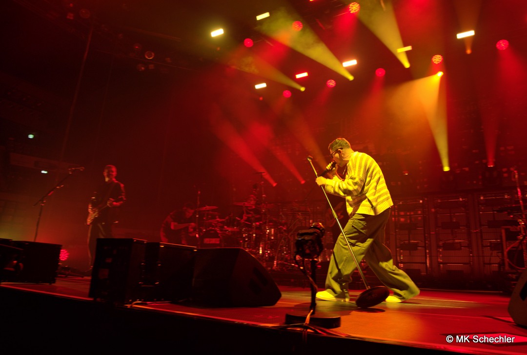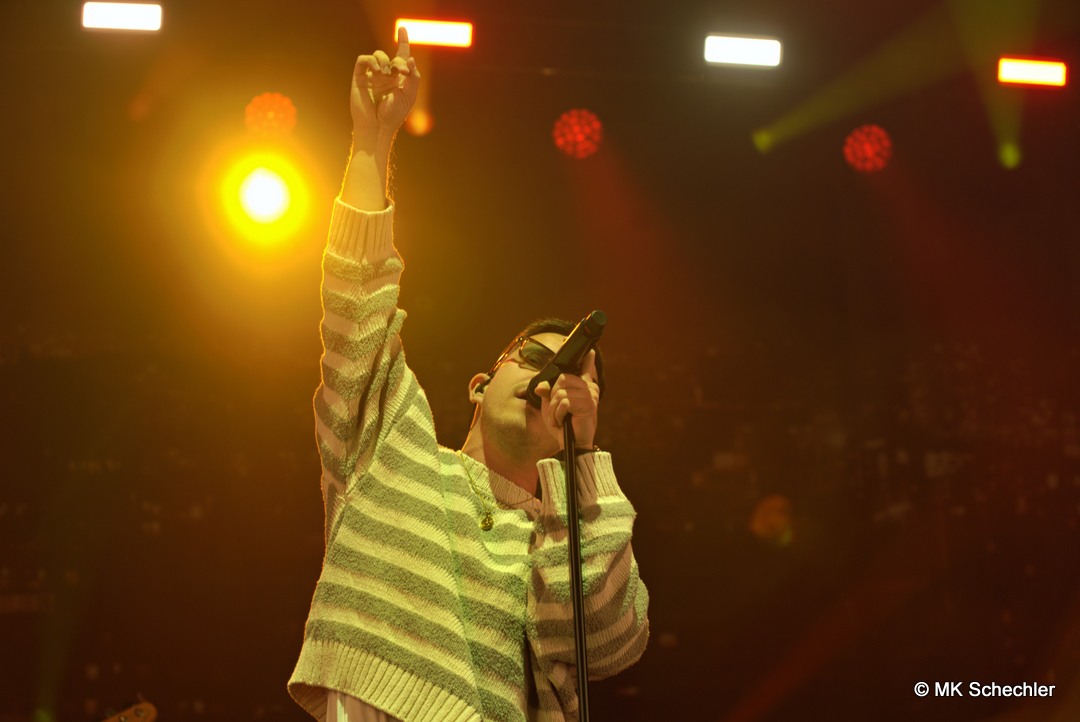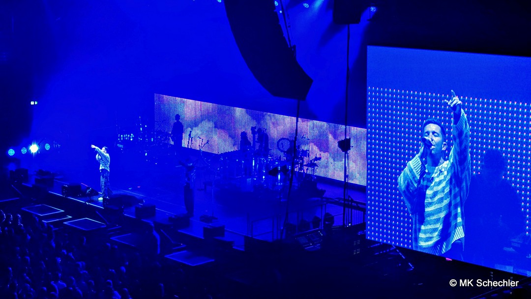Besonders magisch wird es im mittleren Teil der Show, als Santos das Tempo drosselt und sich ans Klavier setzt. In dieser reduzierten, fast intimen Atmosphäre fühlt es sich an, als würde er nur für einen selbst spielen. Die Halle hält den Atem an, und jeder Ton berührt das Publikum tief – ein einzigartiger Moment der Nähe, den Santos mit seiner einfühlsamen Stimme kreiert. Bei „Safe“ und „Would I Lie To You“ verschmelzen Tausende Stimmen zu einem Chor, und man spürt die Gänsehaut auf der Haut, während die Arena in ein Lichtermeer getaucht ist.