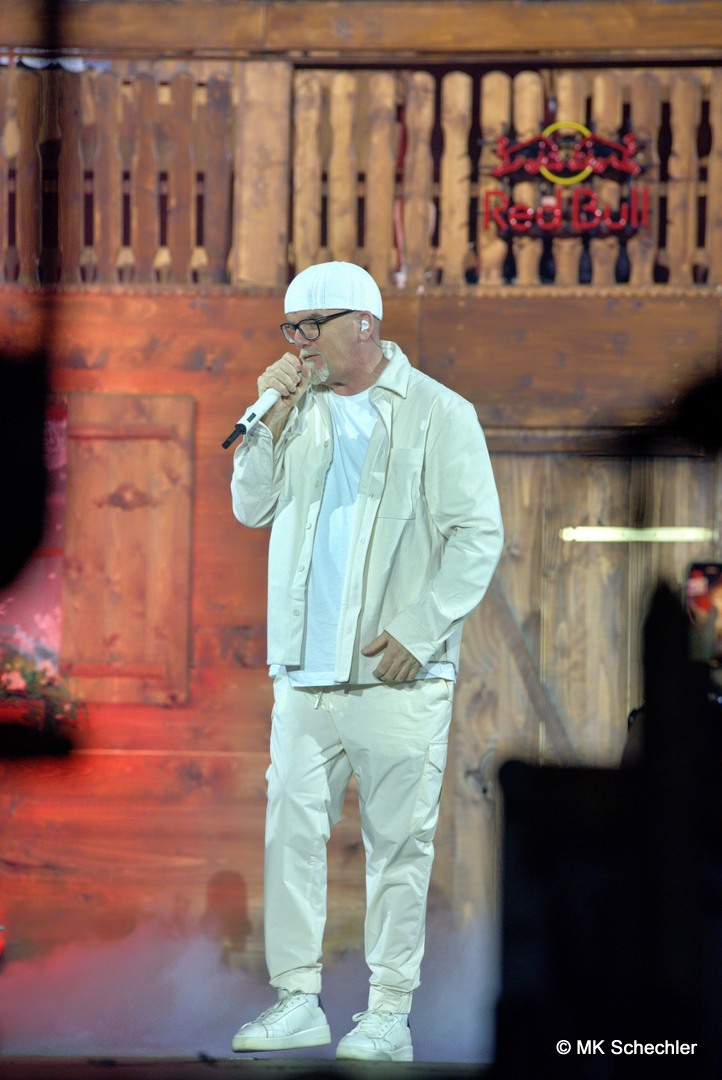 Die 80er-Jahre-Ikone Mr. President riss mit Hits wie „Coco Jamboo“ das Publikum mit und bewies, dass auch Retro-Sounds perfekt in diese moderne Après-Ski-Inszenierung passen. Nach einem weiteren energiegeladenen Set von DJ Ramazotti, der die Menge mit einem Hit-Medley auf Trab hielt, kehrte DJ Ötzi zurück – dieses Mal in einem weißen Anzug. Spätestens mit „White Christmas“ ließ er das Publikum in vorweihnachtlicher Stimmung schwelgen, bevor die Show in die nächste Runde ging.