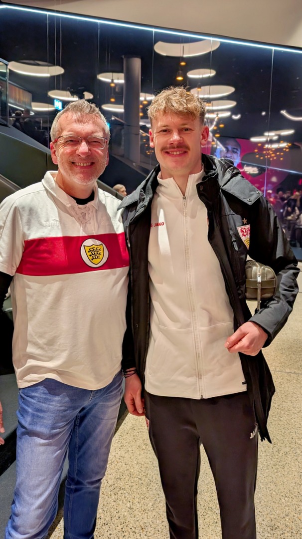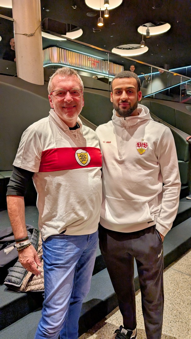 Besonders beeindruckend war die Möglichkeit, hinter die Kulissen zu blicken. Wir hatten die Gelegenheit, verschiedene Spieler zu treffen, Trainer Sebastian Hoeneß zu begegnen und sogar auf der VfB-Trainerbank Platz zu nehmen – ein Moment, der für jeden Fußballfan unvergesslich bleibt.