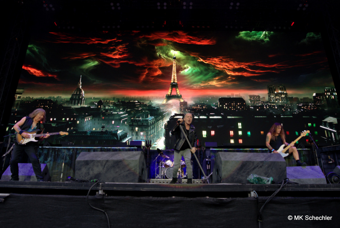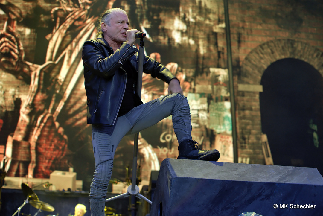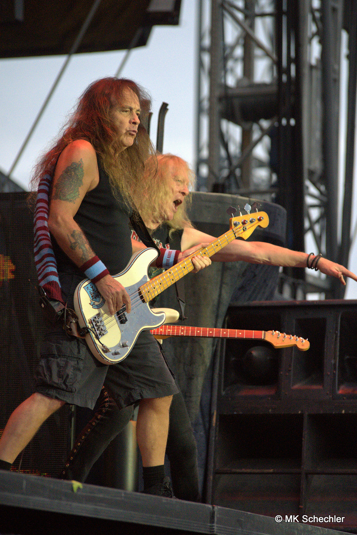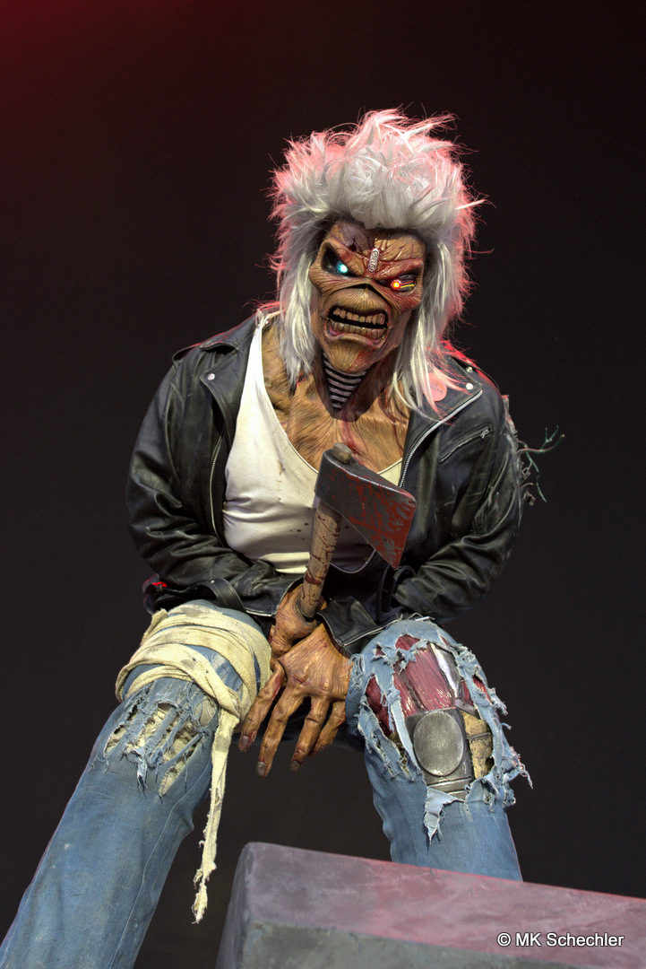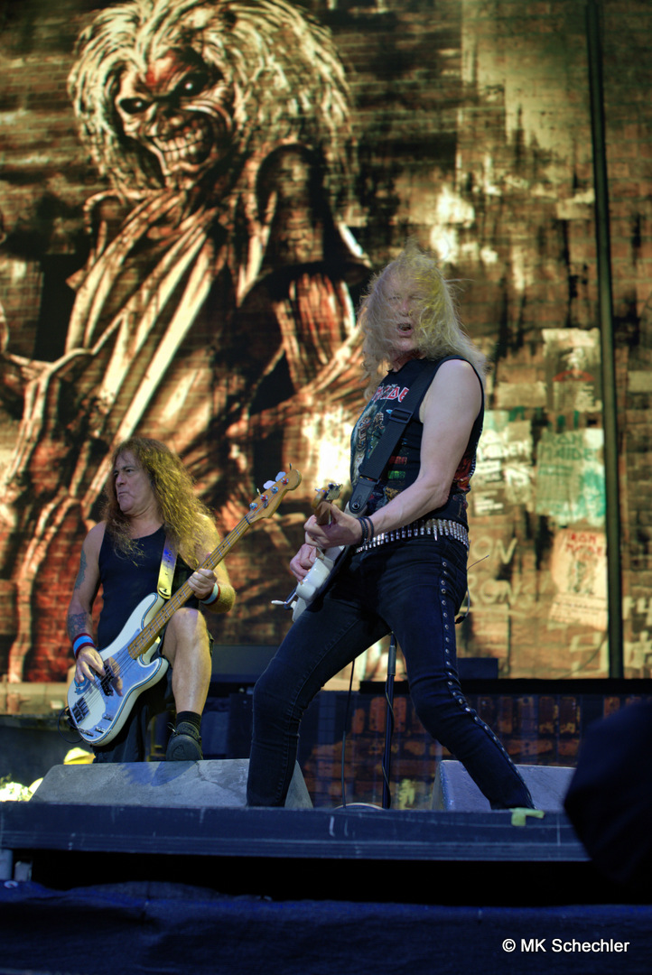 IRON MAIDEN sind nicht nur eine der langlebigsten Bands des Heavy Metal – sie sind eine Institution. Gegründet 1975 in London, trugen sie maßgeblich zur Definition des Genres bei. Frontmann Bruce Dickinson, seit 1981 (mit kurzer Unterbrechung) das stimmgewaltige Gesicht der Band, bewies einmal mehr, dass er mit seinen 66 Jahren nichts von seiner Bühnenpräsenz eingebüßt hat. Mit wehender Jacke, kraftvoller Stimme und britischem Charme führte er durch das Set, während Eddie – das ikonische Bandmaskottchen – mit Tomahawk über die Bühne stapfte.