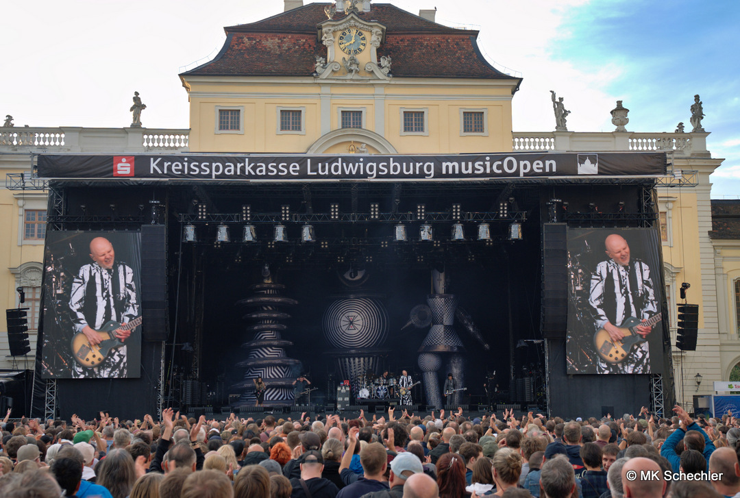 Am letzten Abend der KSK musicOpen im Ludwigsburger Schlosshof gab es noch einmal großes Kino – musikalisch wie atmosphärisch. Die Smashing Pumpkins, eine der prägendsten Alternative-Rock-Bands der 90er, spielten eines ihrer seltenen Konzerte in Deutschland. Ludwigsburg bildete den Auftakt für nur drei Auftritte hierzulande – entsprechend groß war der Andrang von Fans aus ganz Süddeutschland. Und das Wetter? Zeigte sich immerhin gnädiger als beim verregneten Sido-Konzert eine Woche zuvor.