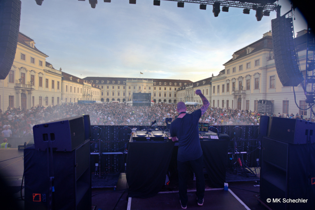 Der Ehrenhof des Residenzschlosses hat sich gestern Abend in einen Tempel elektronischer Klänge verwandelt. Beim Crown of Sound Open-Air feierten Tausende Fans von 15 bis 23 Uhr in barocker Kulisse zu den Sets einiger der größten Namen der Techno-Szene. Das Line-up war ein Versprechen, das eingelöst wurde: Teenage Mutants eröffneten mit einem energiegeladenen Mix, der das Publikum sofort auf Temperatur brachte. Pappenheimer legte nach und trieb die Menge mit seinem charakteristischen Sound weiter an. Klaudia Gawlas spannte ein kraftvolles, treibendes Set, das von intensiven Acid-Linien geprägt war. Mit Einbruch der Dunkelheit übernahm Chris Liebing, der mit seinen tiefen, hypnotischen Bässen das Schloss erzittern ließ – und die Menge für den Höhepunkt des Abends vorbereitete.