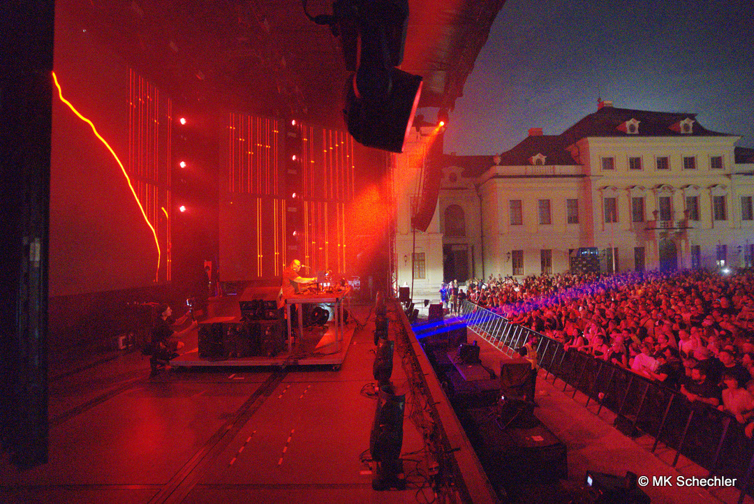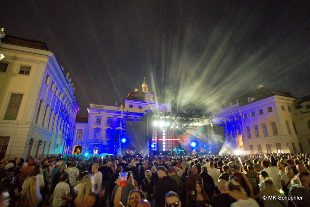 Ein besonderes Highlight war die maßgeschneiderte Licht- und Visualshow, die das barocke Schloss in eine futuristische Leinwand verwandelte. Farben, Formen und Projektionen verschmolzen mit den Beats und erzeugten eine Atmosphäre, die wie aus einer anderen Welt wirkte. Das Zusammenspiel von Klang und Bild machte den Abend zu einem Gesamtkunstwerk, das vielen Besucherinnen und Besuchern noch lange in Erinnerung bleiben wird.