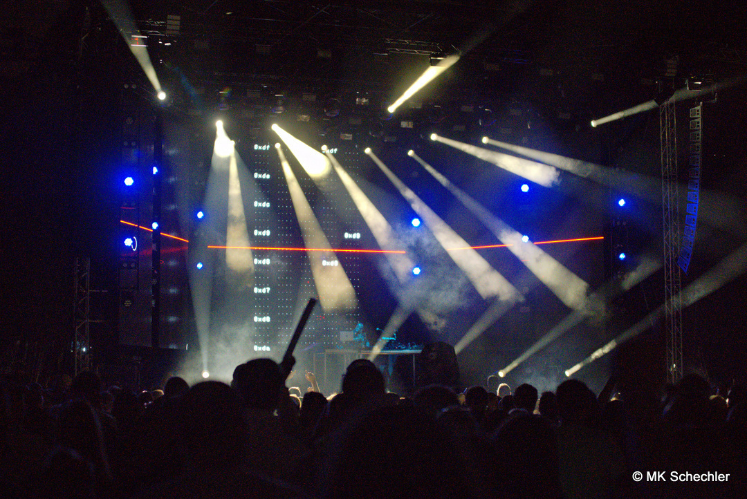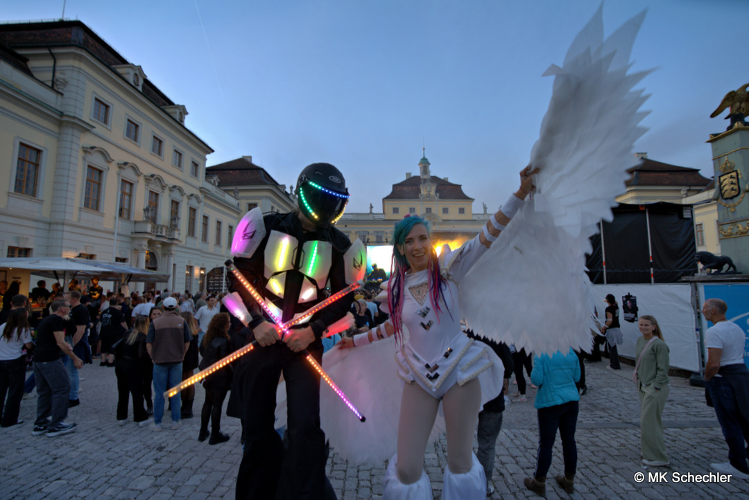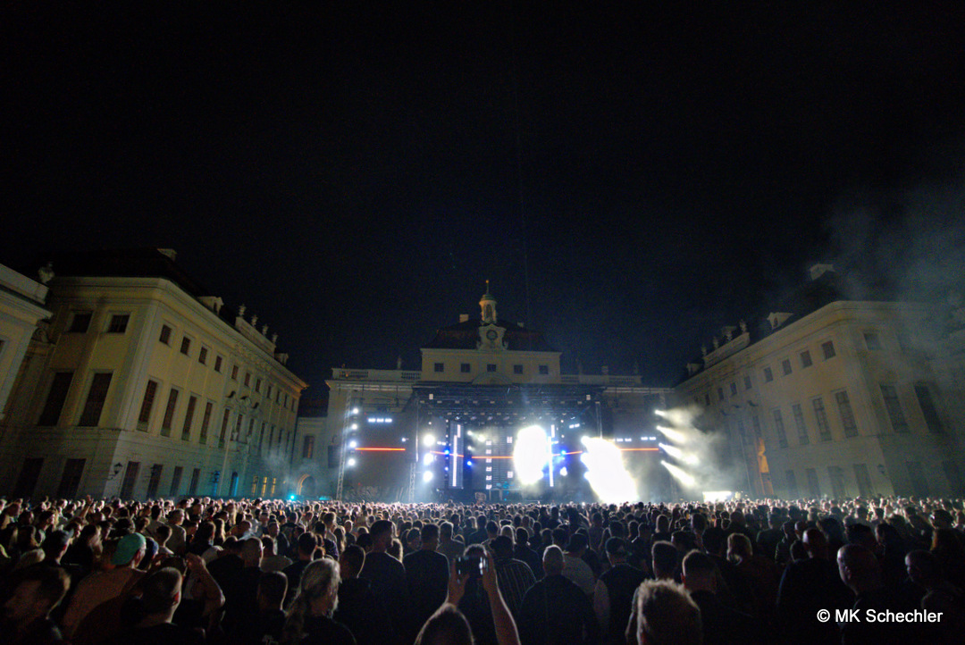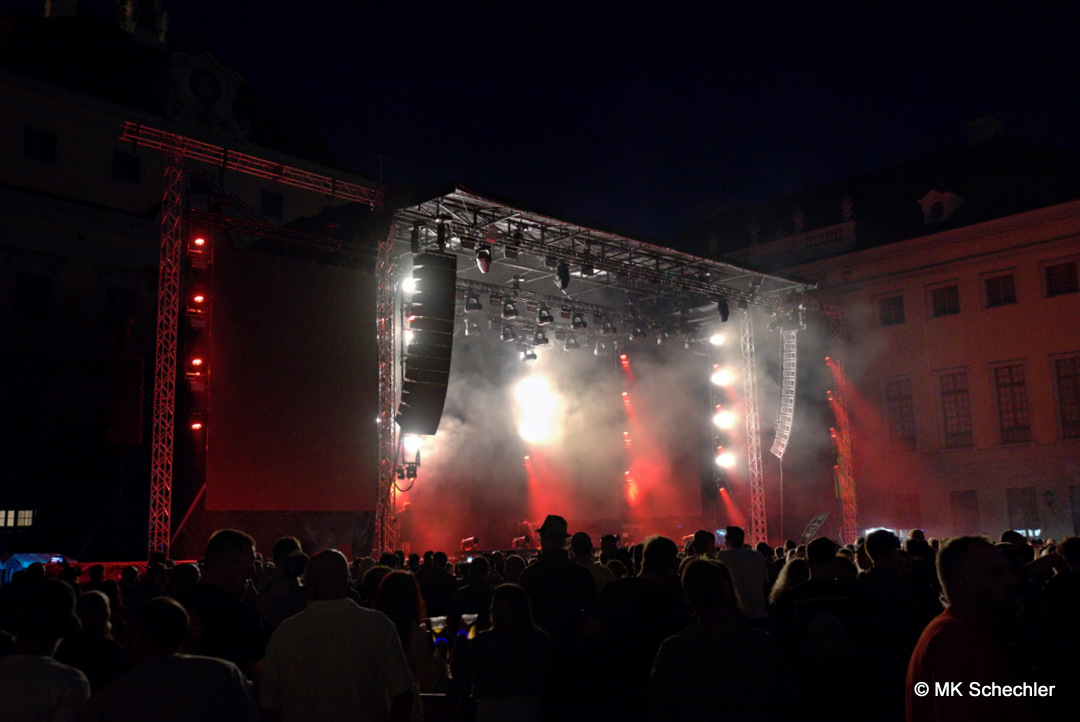 Ein Highlight des Abends war die spektakuläre Licht- und Visualshow: Das barocke Schloss verwandelte sich in eine futuristische Projektionsfläche, auf der Farben und Formen zu den Beats verschmolzen. Dieses Gesamtkunstwerk aus Klang und Bild verwandelte den Ehrenhof in einen magischen Ort, den viele Besucherinnen und Besucher noch lange in Erinnerung behalten werden.