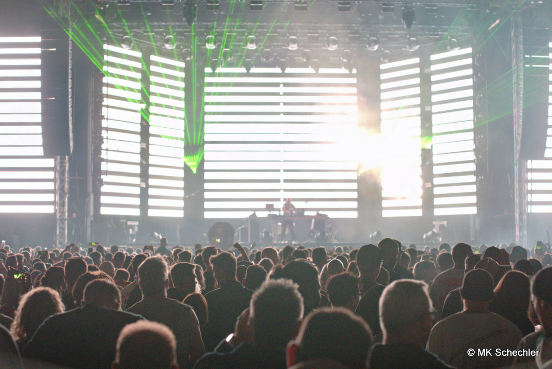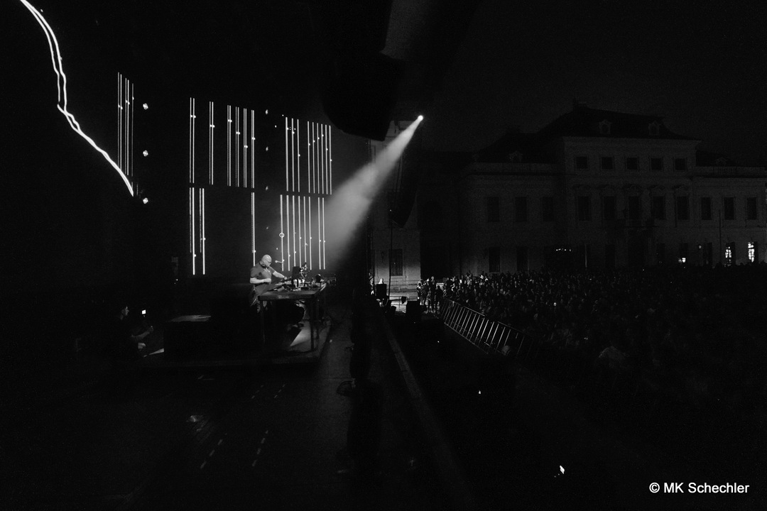 Um Punkt 21 Uhr betrat Carl Cox die Bühne im Ehrenhof des Residenzschlosses – und sofort war klar, warum er seit Jahrzehnten als „King of Electronic Music“ gilt. Mit einer unvergleichlichen Präsenz und einem Set, das Techno, House-Elemente und moderne Kicks perfekt miteinander verband, nahm Cox das Publikum mit auf eine musikalische Reise. Nahtlose Übergänge, präzise gesetzte Drops und ein untrügliches Gespür für den Moment ließen keine Zweifel daran, dass hier einer der größten Künstler der elektronischen Musik am Werk war.