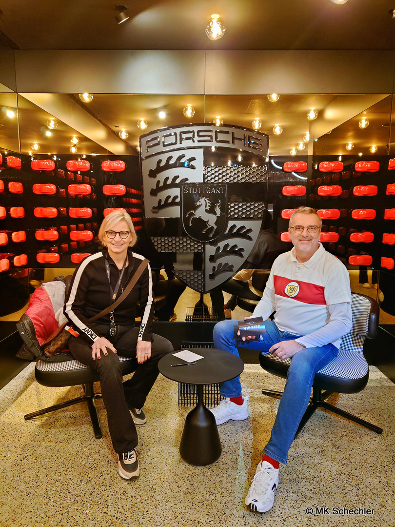 Nach Spielende geht es zurück in den Club. Während die Gäste die „Verlängerung“ genießen, steht meist ein weiterer Interviewgast bereit – häufig ein VfB-Spieler, der gerade pausiert. Diesmal war Ermedin Demirovic zu Gast, der sich nach seinem Mittelfußbruch zurück kämpft. Bei gutem Essen und entspannter Stimmung bietet sich anschließend reichlich Gelegenheit, mit den Sitznachbarn über das Spiel zu fachsimpeln oder den Abend an der Targa-Bar ausklingen zu lassen.