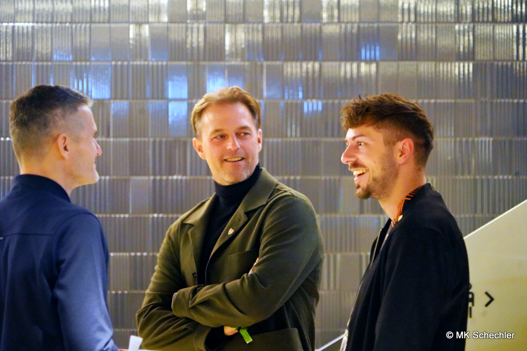 In der Pause erwartet die Besucher die „Halbzeit“ – etwa die Stadionwurst (auch vegan erhältlich) – während die Spieler direkt nebenan in die Kabinen zurückkehren. Jens Zimmermann begrüßt zur Halbzeit regelmäßig spannende Gäste. Diesmal war es Jonas Deichmann, Extremsportler und Weltrekordhalter, der mit inspirierenden Geschichten von seinen Triathlon-Abenteuern um die Welt begeisterte.