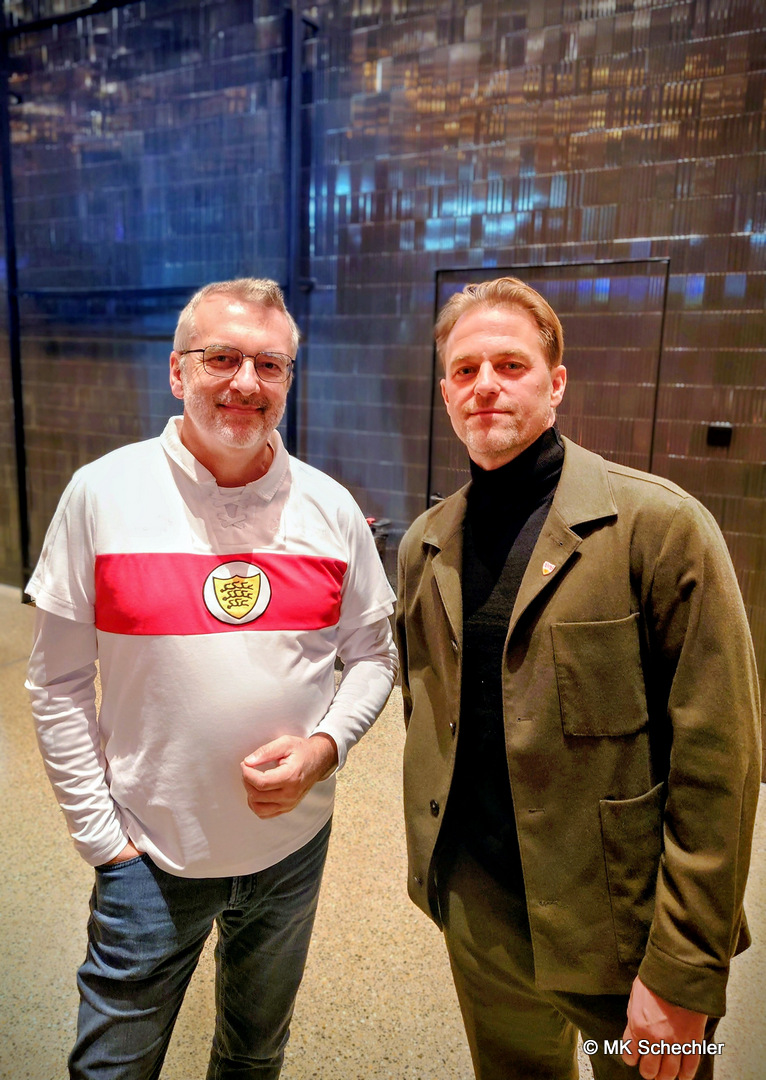 Moderator Jens Zimmermann führt seit Sommer 2024 mit viel Charme und Fachwissen durch den Abend. Vor dem Spiel begrüßt er die Gäste, informiert über Aktuelles und lädt zu einem ersten Interview ein – diesmal mit Jason Reilly, einem der profiliertesten Solisten des Stuttgarter Balletts.