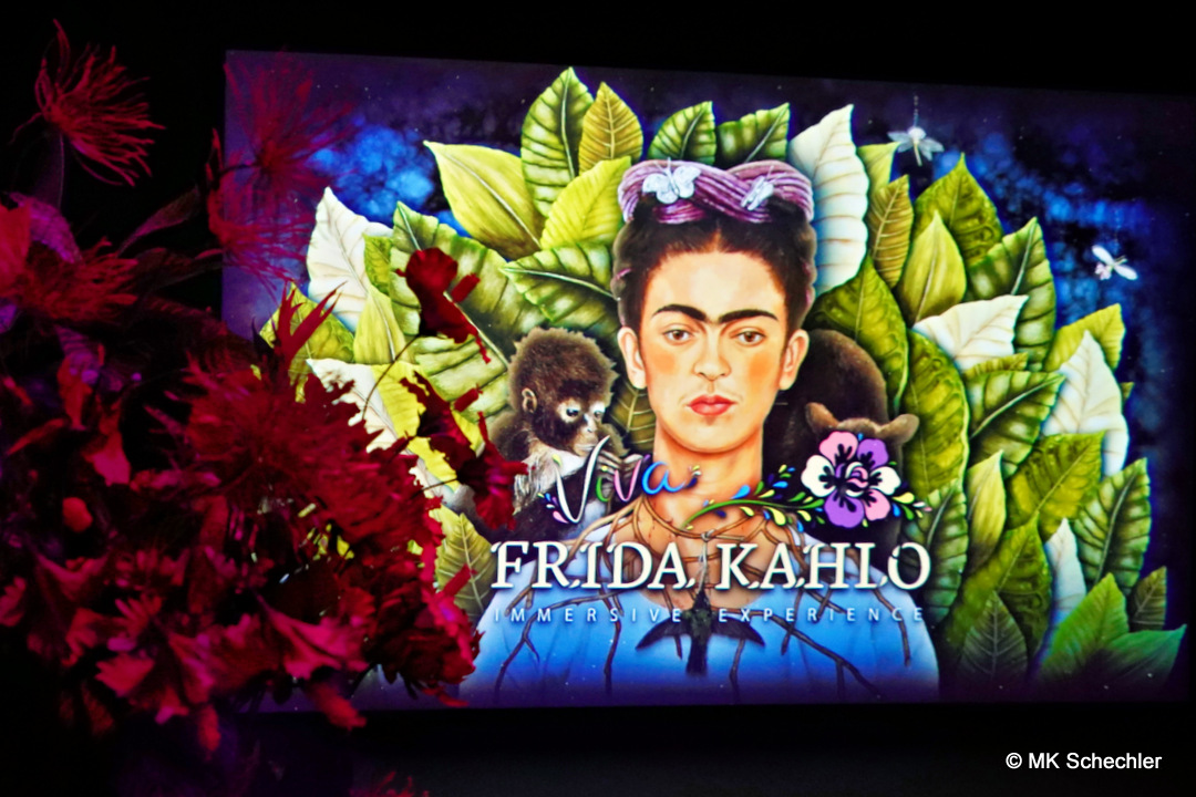 Das Herzstück der Ausstellung ist der große Showroom. Mit riesigen Rundumprojektionen werden die oft kleinformatigen Werke Kahlos auf bis zu zehn Meter Breite und über fünf Meter Höhe vergrößert. Die Wände und der Boden verwandeln sich in pulsierende Leinwände. Man steht mitten in Fridas Welt. Die stark erzählte Dramaturgie stützt sich auf ihre Tagebücher und führt durch die 1920er bis 40er Jahre. Die Besucherinnen und Besucher spüren den Mut, die Verletzlichkeit und den ungebrochenen Willen der Künstlerin, ihr Leben selbst zu definieren.