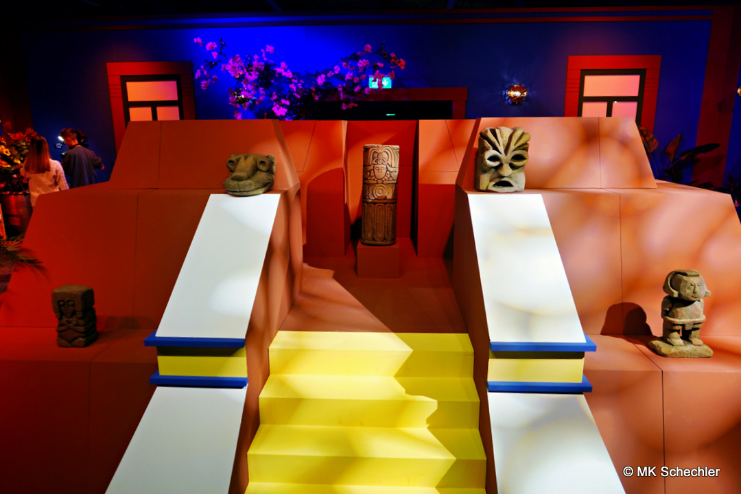 Ein besonderes Erlebnis bietet die Virtual Reality Experience. Sie nimmt das Publikum mit in Kahlos Traumwelt, in ihre Symbolik, ihre Mythen, ihre innere Landschaft. Farben, Formen und Symbole verschmelzen zu einer dichten Reise zwischen Schmerz, Befreiung und Lebensfreude. Danach lädt der Innenhof der Casa Azul zum Durchatmen ein.