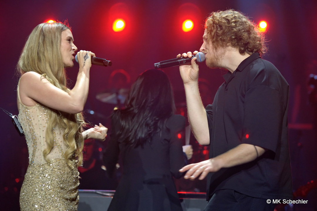 Bei der Night of the Proms konzentrierte sich Michael Schulte auf genau jene Stücke, die seine Karriere und Persönlichkeit am besten widerspiegeln. Den Auftakt machte „Falling Apart“. Der Song wirkte in der orchestralen Umgebung fast noch verletzlicher als in der Studioversion. Die Arrangements blieben bewusst zurückhaltend, ließen Luft zwischen den Tönen und gaben Schultes Stimme Raum, sich zu entfalten. Es war ein ruhiger Einstieg, der sofort Aufmerksamkeit schuf, ohne laut sein zu müssen. Mit „You Let Me Walk Alone“ wurde es spürbar persönlicher. Der Song hat auch Jahre nach seiner Veröffentlichung nichts von seiner Wirkung verloren. In der Version mit Chor und Orchester gewann er zusätzliche Tiefe, ohne an Direktheit einzubüßen. Man merkte, dass Schulte diesen Titel nicht einfach singt, sondern jedes Mal neu durchlebt. Die große Halle wurde für einen Moment erstaunlich still. „Back to the Start“ brachte anschließend eine andere Facette ins Spiel. Mehr Weite, mehr Hoffnung, ein Blick nach vorne. Der Song passte perfekt zum Proms-Konzept, da er sowohl poppig als auch emotional getragen ist. Orchester und Band verstärkten den hymnischen Charakter, ohne ihn zu erdrücken. Einer der emotionalen Höhepunkte des gesamten Abends folgte später mit „Ordinary“, gemeinsam mit Joss Stone. Das Duett entwickelte eine besondere Intensität, getragen von zwei sehr unterschiedlichen, sich aber perfekt ergänzenden Stimmen. Hier traf Schultes zurückgenommene Emotionalität auf Stones soulige Kraft. Ein Moment, der lange nachhallte und zu den stärksten des Abends zählte.
