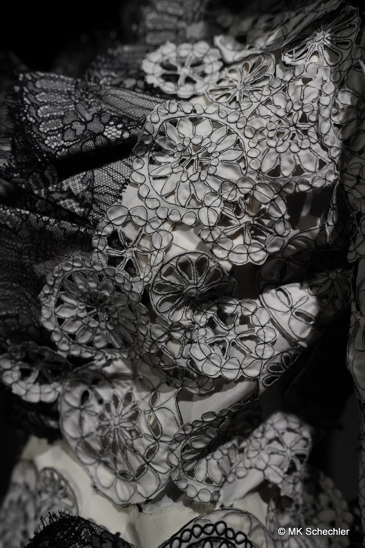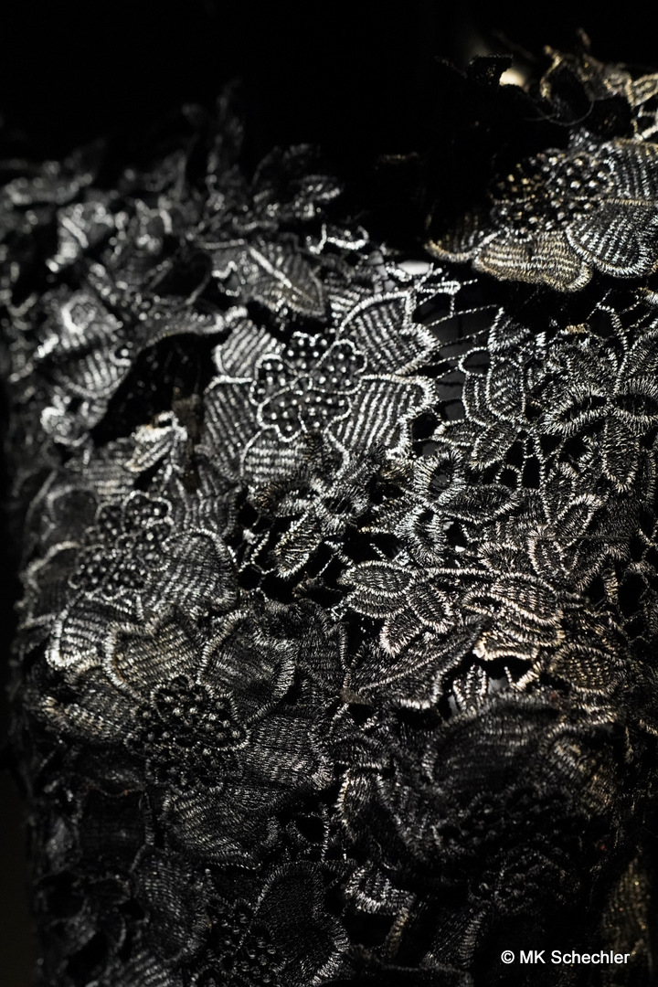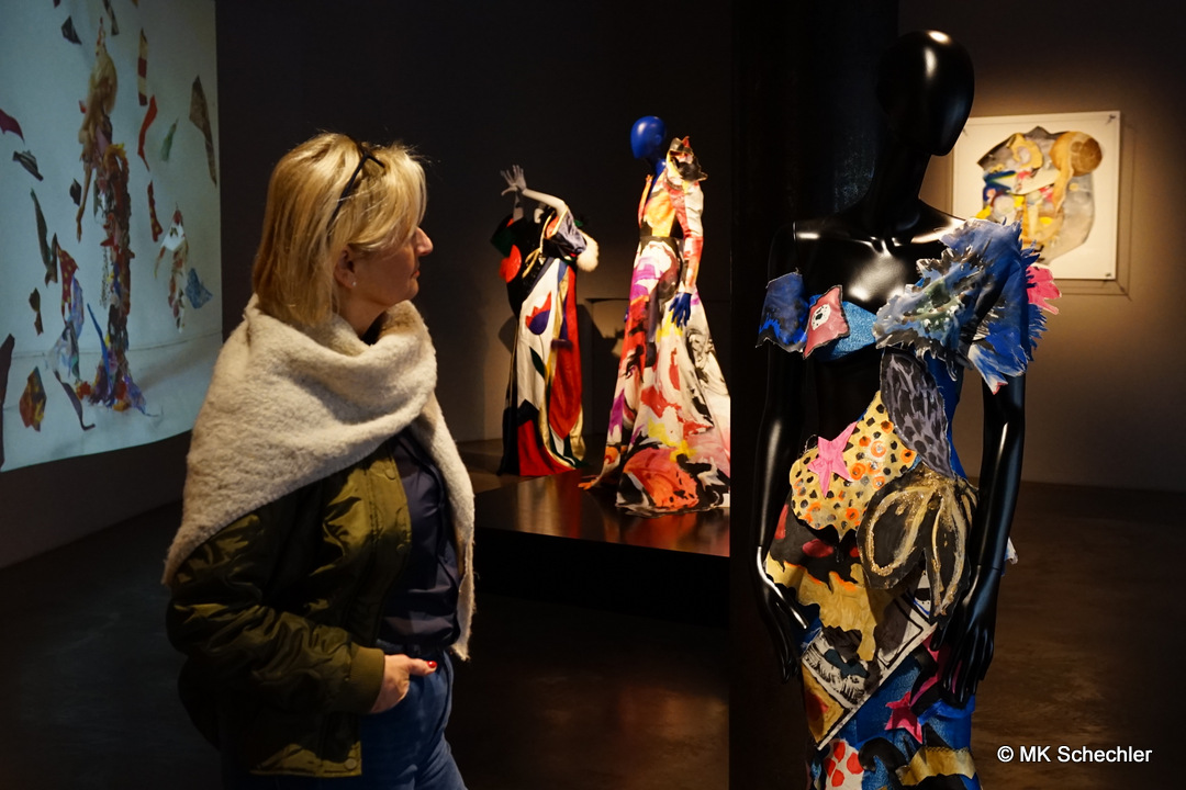 Van der Kemp versteht sich nicht nur als Designer, sondern als Multimediakünstler. Seine Arbeiten bewegen sich bewusst zwischen Mode und Kunst. Zeichnung, Text, Fotografie, Film, Schmuck, Klang und Objekt fließen in seine Entwürfe ein. Mode wird bei ihm zum Medium, um Geschichten zu erzählen und Emotionen auszulösen. Im MAC Museum Art & Cars kommt dieser Ansatz besonders gut zur Geltung. Die klare Architektur des Museums, die Präsenz der Hypercars und die opulente Couture bilden ein Spannungsfeld zwischen Poesie und Provokation. Man bleibt stehen, schaut genauer hin, entdeckt Details – Nähte, Materialien, überraschende Kombinationen – und spürt schnell, dass hier mehr gezeigt wird als schöne Oberflächen.