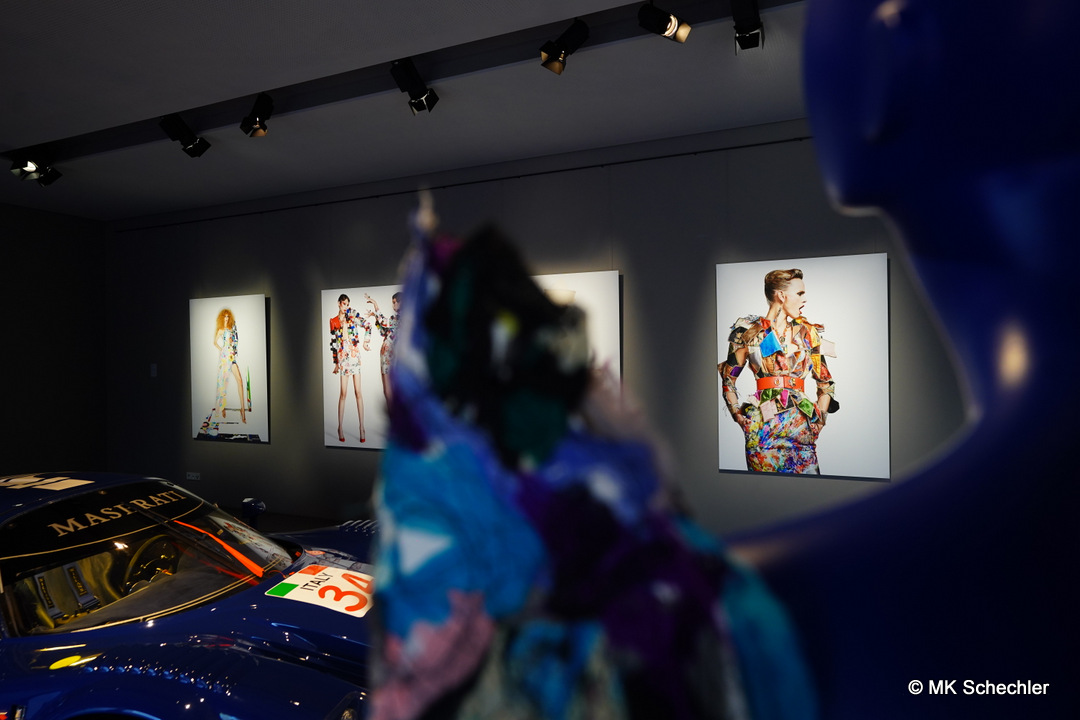 Unsere Redaktion war vor Ort und hat eine umfangreiche Foto-Strecke mitgebracht. Schon beim Betreten der Ausstellung wird klar: Hier geht es nicht um klassische Modepräsentation oder reine Automobilästhetik, sondern um ein bewusst inszeniertes Zusammenspiel aus Form, Farbe, Material und Haltung.