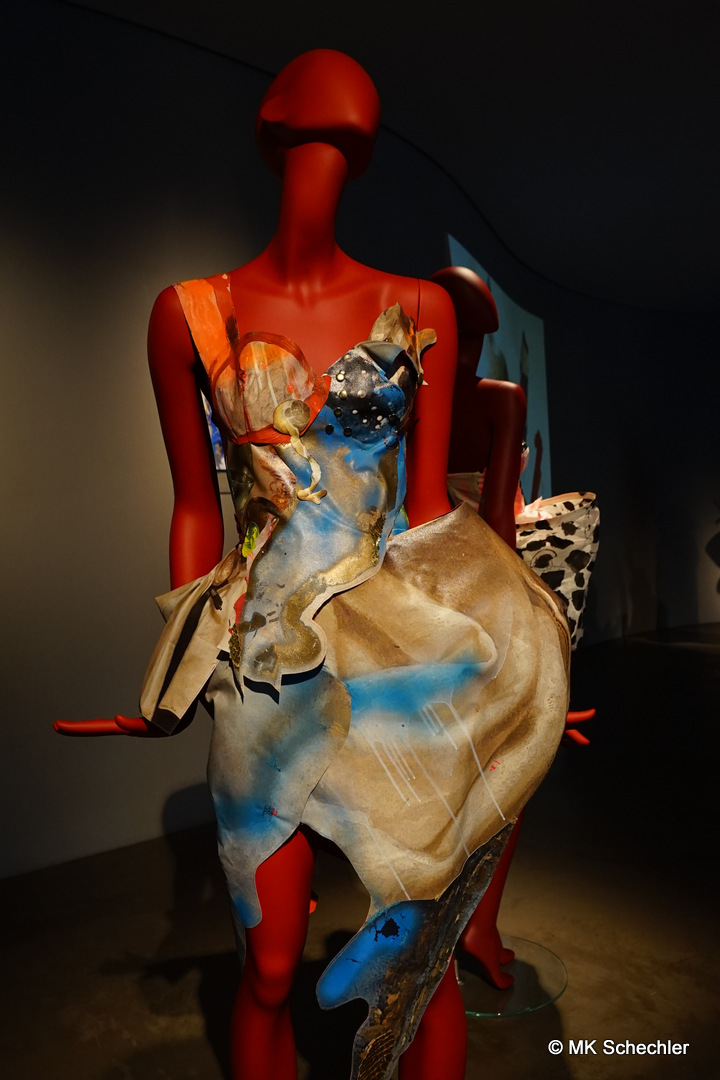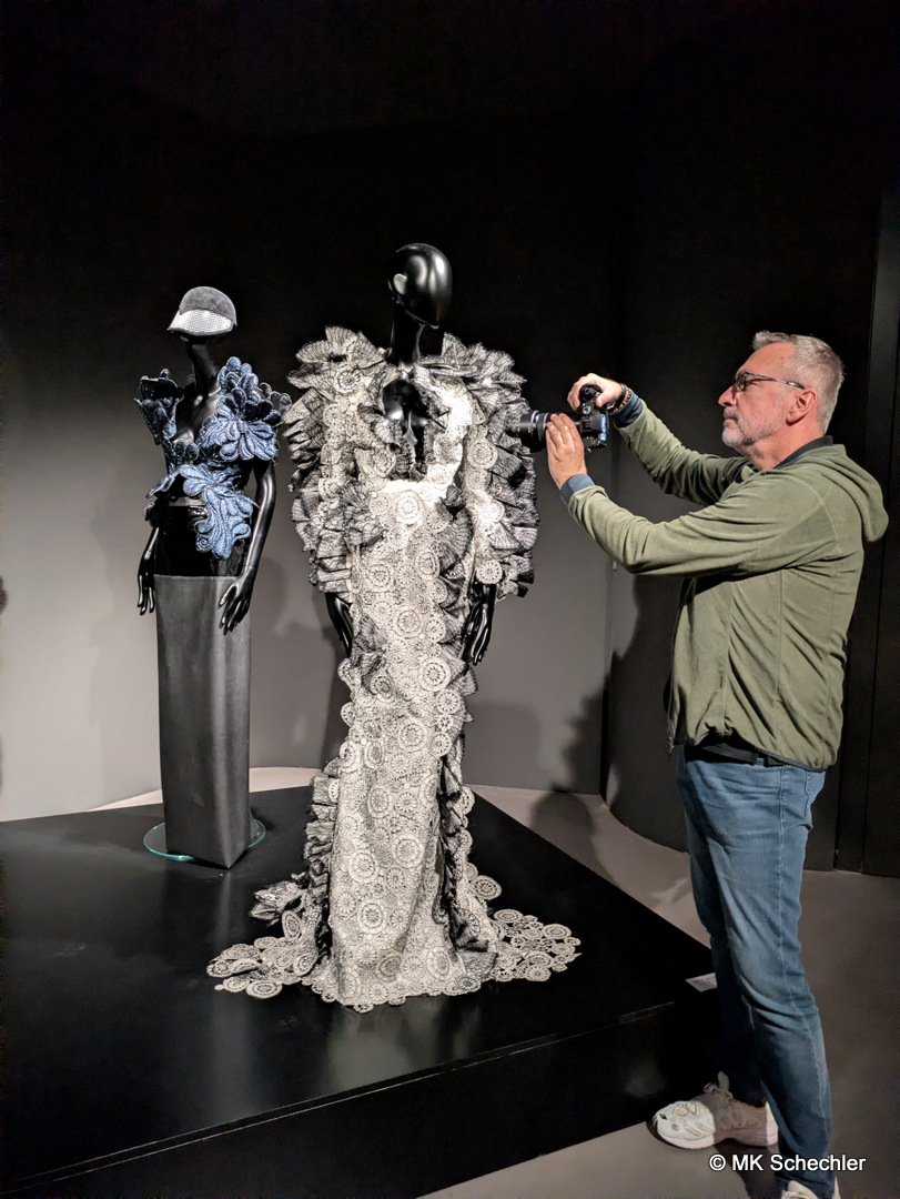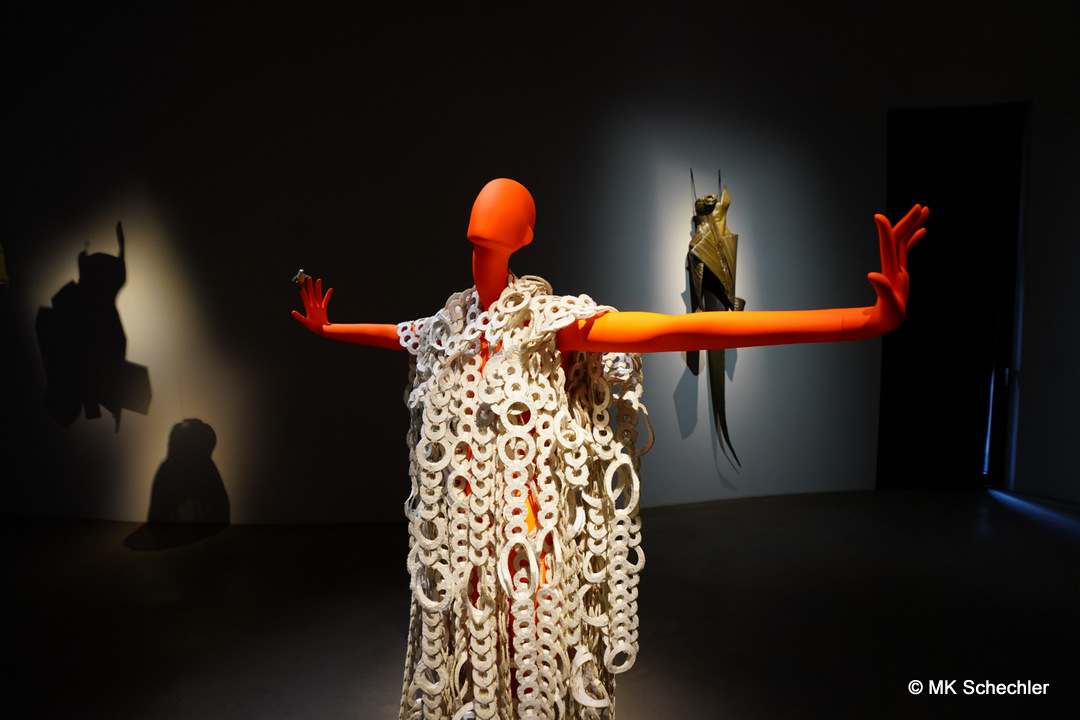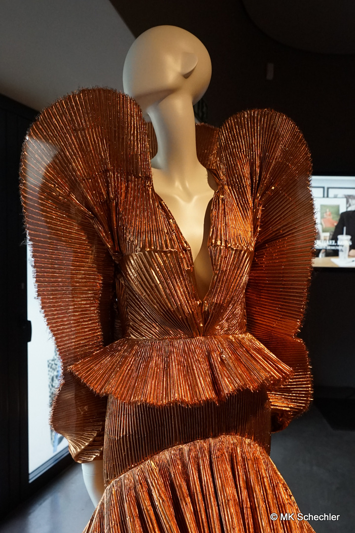 Ronald van der Kemp blickt auf über zwei Jahrzehnte Erfahrung als Designer und Kreativdirektor für internationale Luxusmarken zurück. 2014 gründete er sein eigenes Label RVDK, um Mode neu zu denken – konsequent, verantwortungsvoll und inklusiv. Sein Ansatz: eine „neue Ethik in der Luxusmode“. RVDK gilt heute als weltweit erste Couture-Marke mit einem durchgängig umwelt- und sozialbewussten Konzept. Van der Kemp arbeitet radikal mit Upcycling, Wiederverwendung und sogenannten Deadstock-Materialien. Stoffe, die sonst verbrannt, eingelagert oder entsorgt würden, verwandelt er in aufwendige, glamouröse Couture. Nicht ohne Ironie nennt er diesen Ansatz selbst „Project Trashure“. Dass nachhaltige Mode keineswegs Verzicht bedeutet, sondern im Gegenteil neue kreative Freiräume eröffnen kann, zeigt diese Ausstellung eindrucksvoll. Die Stücke wirken luxuriös, emotional und handwerklich auf höchstem Niveau – ohne den moralischen Zeigefinger, dafür mit umso mehr Ausstrahlung.