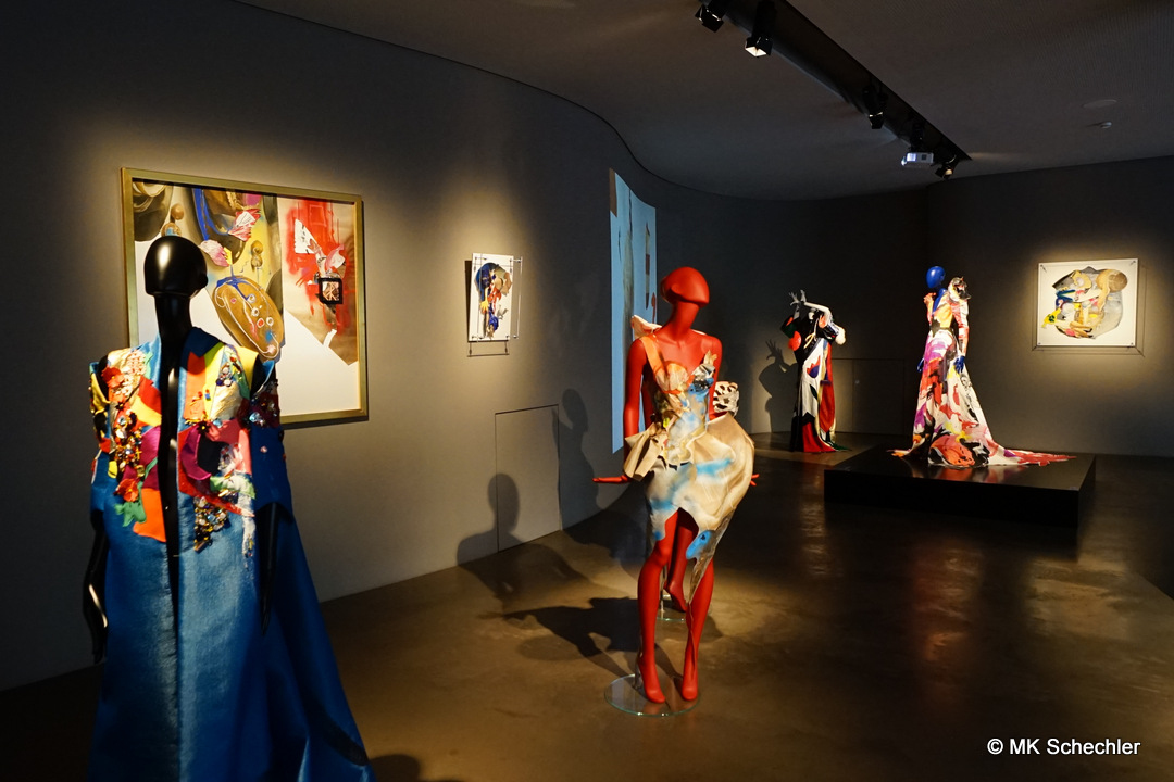 Ronald van der Kemps Entwürfe sind alles andere als zurückhaltend. Schillernde Farben, opulente Stoffe, skulpturale Silhouetten und eine fast theatrale Dramatik prägen seine Arbeiten. In Singen entfalten diese Couture-Kunstwerke eine besondere Wirkung, weil sie nicht auf neutralen Podesten stehen, sondern selbstbewusst neben Hypercars positioniert sind – Maschinen, die für technische Perfektion, Geschwindigkeit und Grenzüberschreitung stehen. Genau hier liegt der Reiz der Ausstellung: Mode und Automobil verschmelzen zu einer gemeinsamen Erzählung über Leidenschaft, Vision und den Mut, neue Wege zu gehen. Die Kleider wirken neben den Fahrzeugen nicht fragil, sondern kraftvoll. Die Autos verlieren im Gegenzug etwas von ihrer reinen Ingenieurskühle und werden Teil einer künstlerischen Gesamtkomposition.