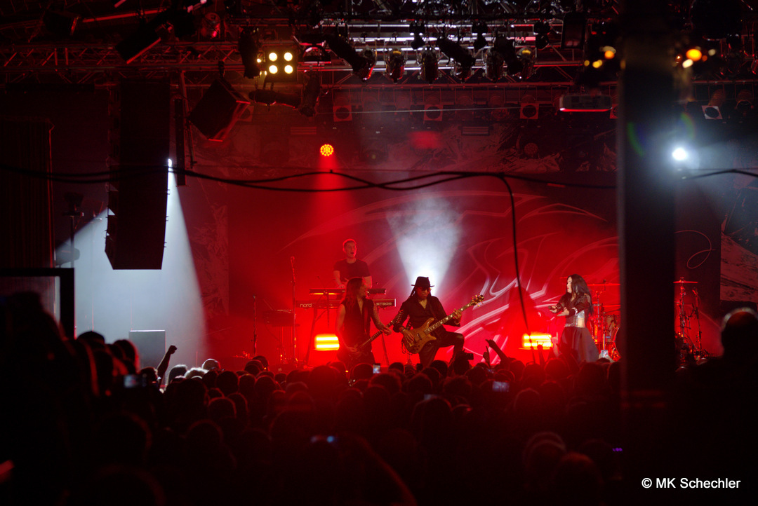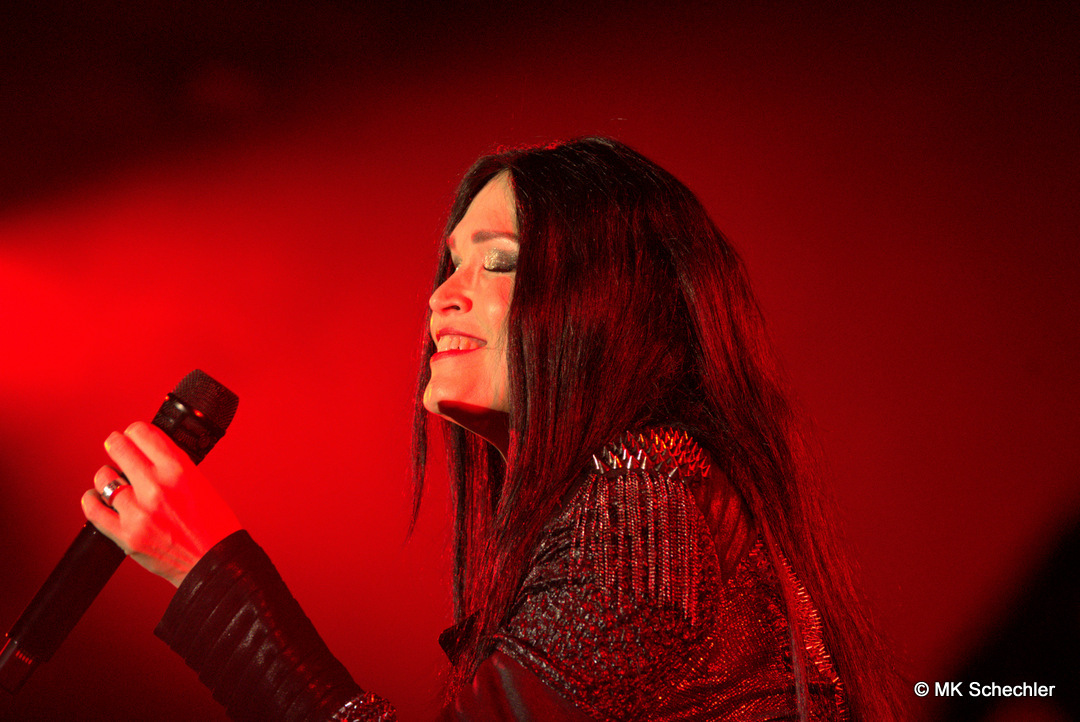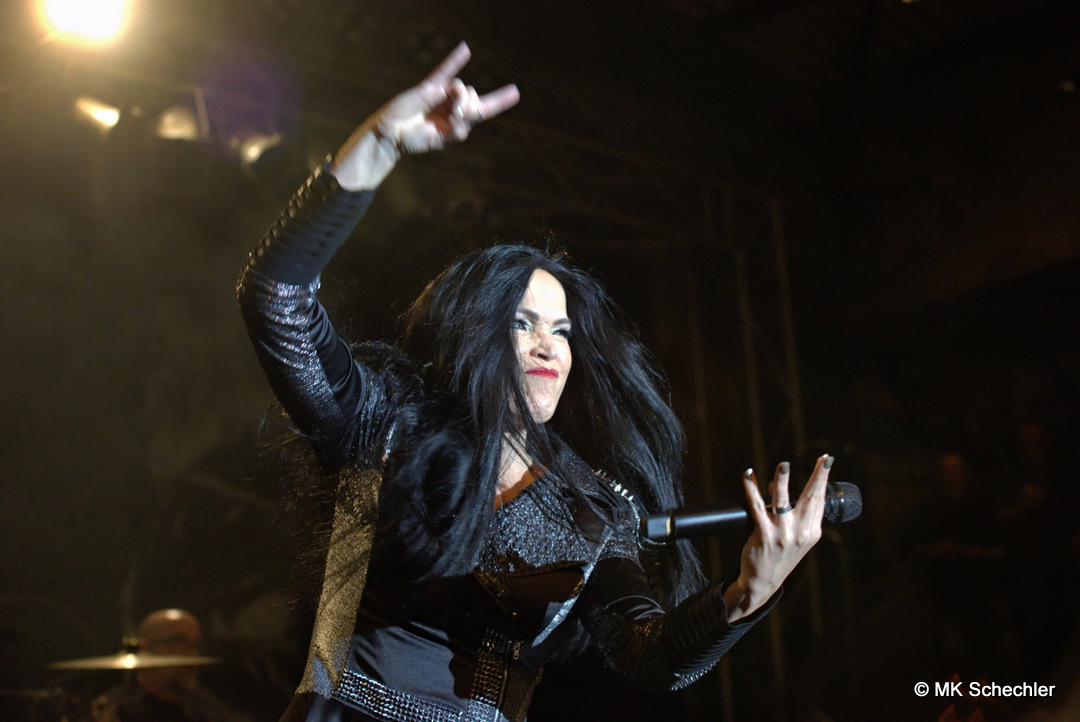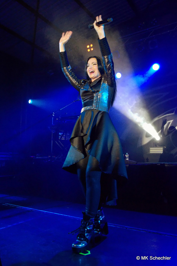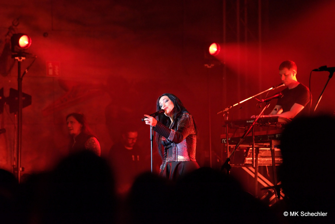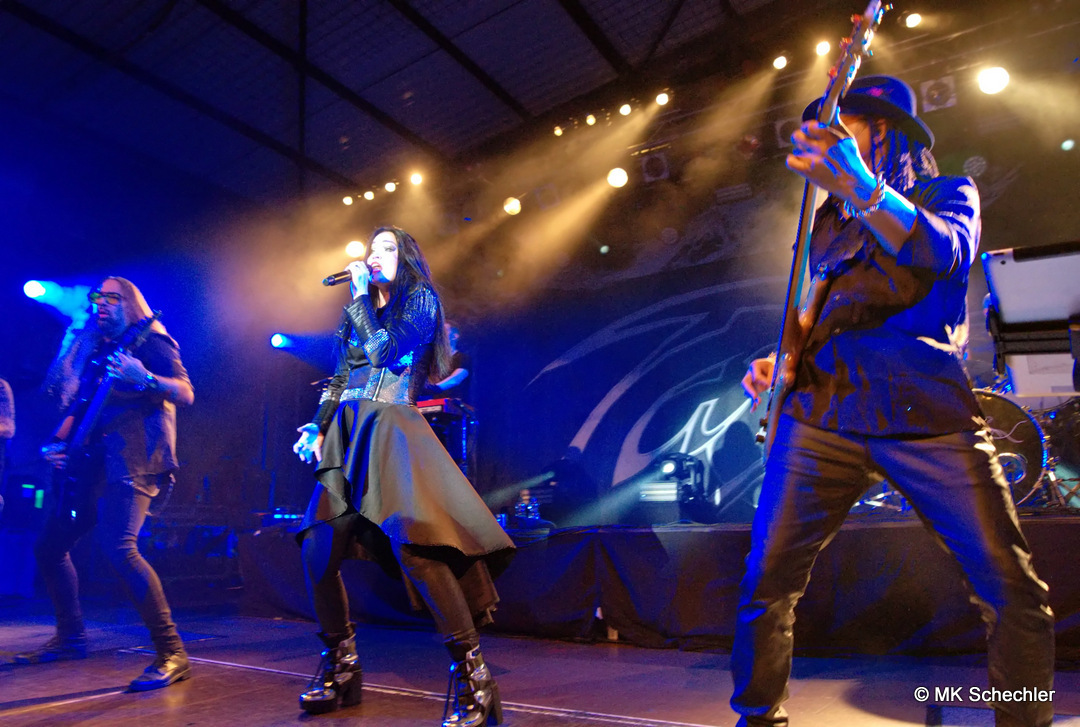 „Anteroom of Death“ und „Victim of Ritual“ führen zurück zu What Lies Beneath (2010). Gerade „Victim of Ritual“ funktioniert live wie ein Manifest. Das Publikum singt die Refrains lautstark mit, die Arme gehen nach oben, und Tarja dirigiert mit einer kleinen Handbewegung einen ganzen Saal. Ein besonderer Moment folgt mit „Into the Sun“. Tarja allein am Keyboard. Kein Pathos, keine große Inszenierung. Nur sie, das Instrument und diese außergewöhnliche Stimme. In solchen Augenblicken versteht man, warum sie als eine der prägendsten Stimmen des Symphonic Metal gilt. Sie braucht kein Feuerwerk. Ihre Stimme reicht. „Shadow Play“ und „Silent Masquerade“ zeigen noch einmal ihre Bandbreite – von dramatisch bis fast hymnisch. Man hört die Entwicklung: weg vom reinen Opernklang, hin zu einer vielseitigen Rock-Frontfrau, die ihre Klassik-Wurzeln bewusst einsetzt, aber nie zur bloßen Show verkommen lässt.