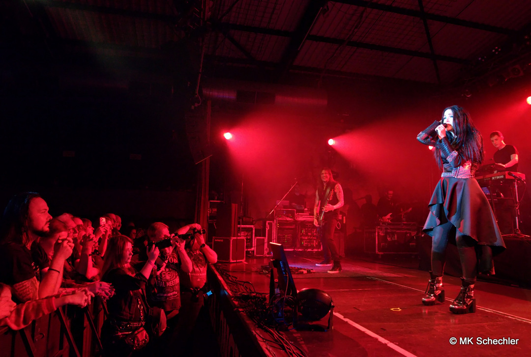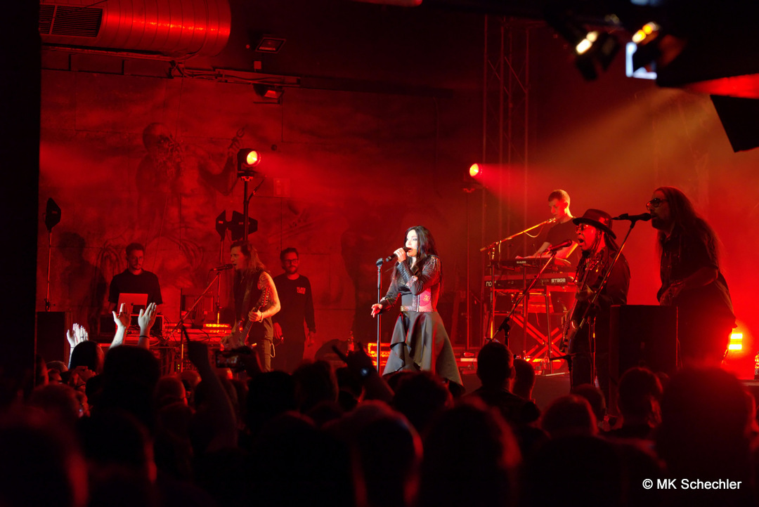 Als die ersten Synthesizer-Klänge von „Planet Hell“ einsetzen, geht ein Raunen durch die Halle. Ein Song aus der frühen Nightwish-Ära, damals noch mit Tarja am Mikro. Hier schließt sich ein Kreis. Es ist kein nostalgischer Blick zurück, sondern eine selbstbewusste Rückeroberung. „I Walk Alone“ darf natürlich nicht fehlen. Ihre erste Solo-Single von 2007, erschienen auf My Winter Storm. Damals der klare Beweis, dass sie auch ohne Nightwish bestehen kann. Heute ist der Song eine Hymne. Das Publikum singt jede Zeile.