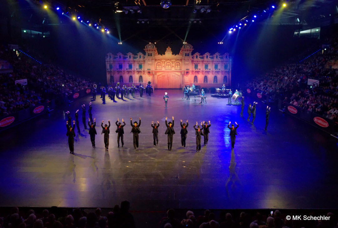 Den Auftakt machten klanggewaltige Orchester, die eindrucksvoll zeigten, wie vielfältig die internationale Militär- und Blasmusikszene ist. Zu den Teilnehmern gehörte das Repräsentationsorchester der Gardisten aus Bulgarien, das mit präziser Marschmusik und eindrucksvoller Formation überzeugte. Aus Deutschland waren unter anderem das Musikcorps Ufhausen und die Formation Fascinating Drums angereist, die mit rhythmischer Präzision und energiegeladenen Percussion-Einlagen für Stimmung sorgten. Internationale Klangfarben brachten auch die Trachtenkapelle Irschen aus Österreich sowie Pipes-and-Drums-Ensembles aus Schottland und Irland auf die Bühne. Besonders bei den kraftvollen Dudelsackmelodien und den markanten Trommelschlägen wurde die Arena immer wieder zum Mitklatschen und Mitfiebern animiert.